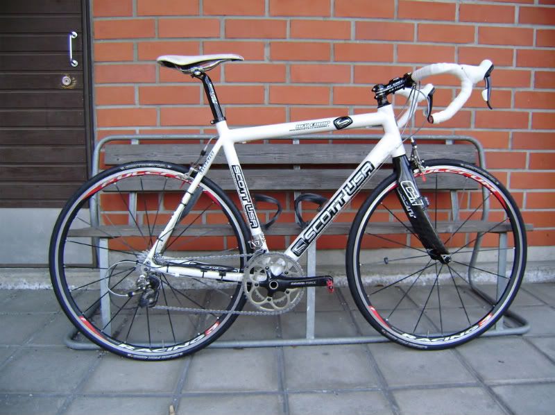 Tämmönen Scotti. Avidin BB7:t on nykyisin jarruina ja renkaat on Mountain Kingit. Nykyään Scottilla on kakkospyörän vakanssi..