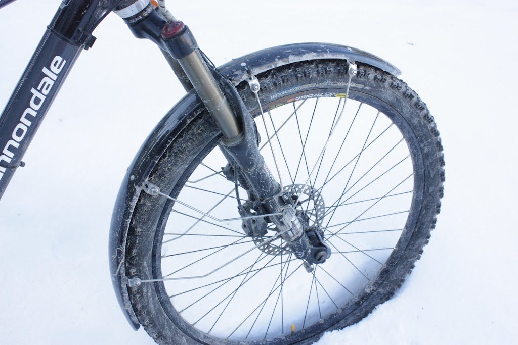 Aika messevät rapakaaret. Ei tuota takakurakaarta saisi vähän edemmäs? Nyt se ei suojaa etuvaihtajaa (/rattaita/ketjuja, ja roiskeiden kautta myös kenkiä), mutta renkaan takana taas kaari menee tarpeettomankin pitkälle (vai tarkoititko "kärryllä" peräkärryä?).