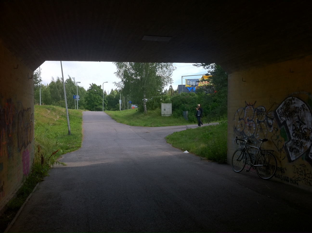 Kartelliringin alullepanija ilmoittautuu *hep* Nyt alkaa olla jo aika hoodeilla kotoa käsin :) En kyllä suoraan osaa sanoa paikkaa, mutta jospa ehtisin tutkailemaan kun irtaudun työnantajan kahleesta. Tuo alikulku oli harmittavan liki, mutta en koskaan käytä sitä enkä olisi tiennyt.