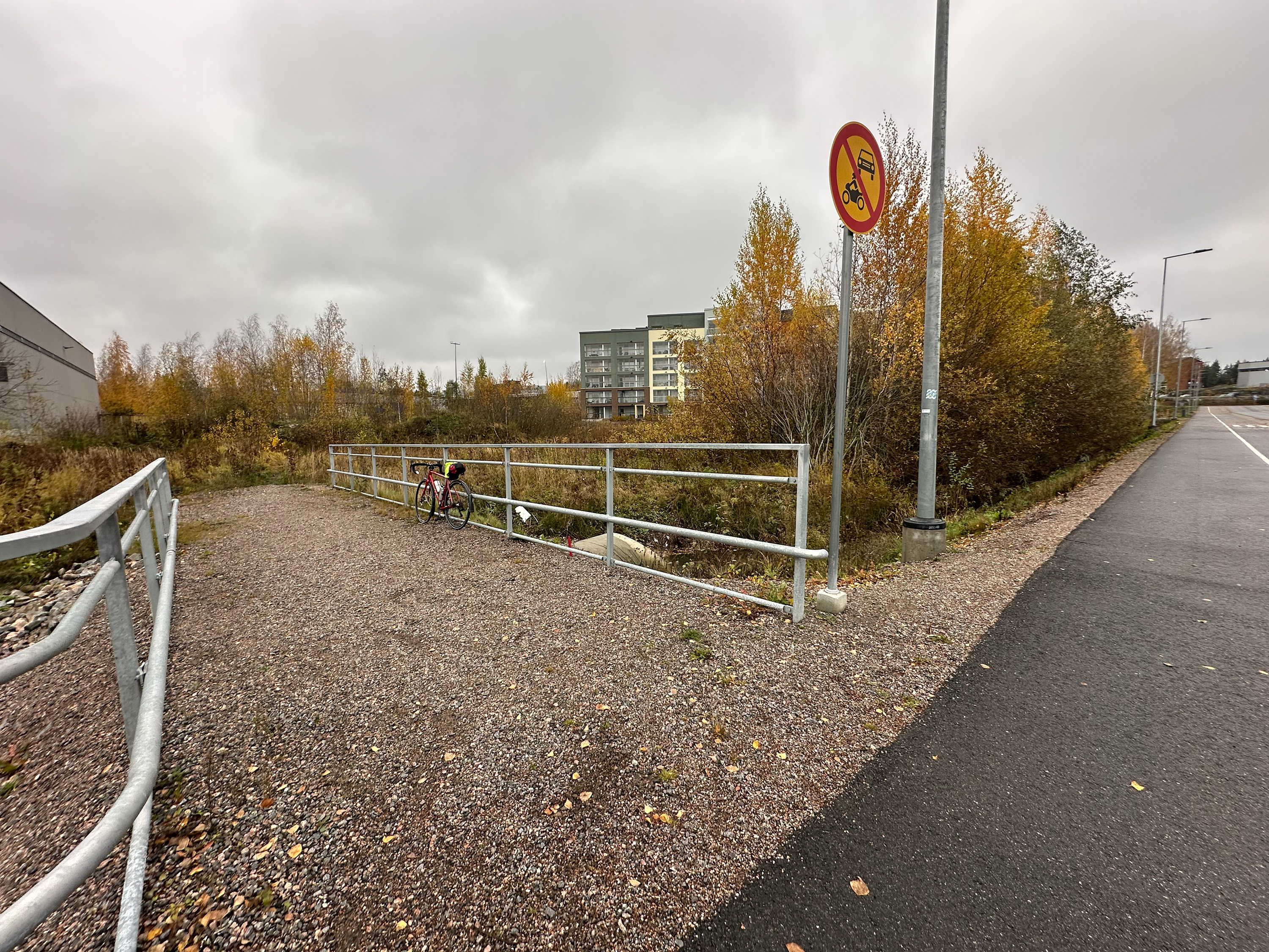 Vanha on keskeneräinen aukio rakenteilla olevalla asuinalueella Leinelässä. Rasti 1201.