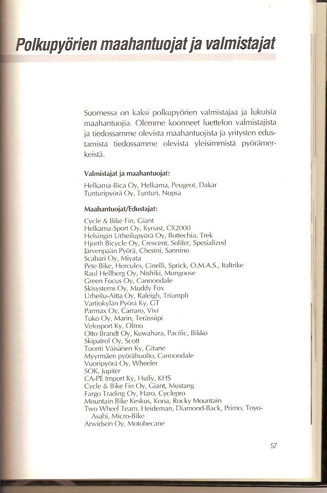 Siinä pientä tietoa maahantuojista ja pyöräseuroista vuodelta 1992.