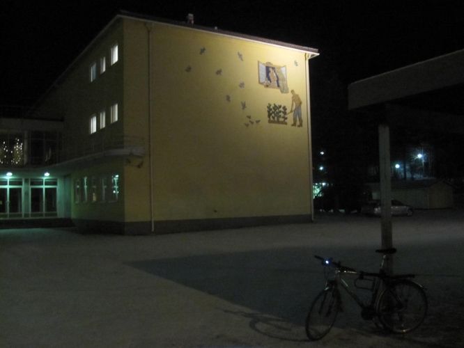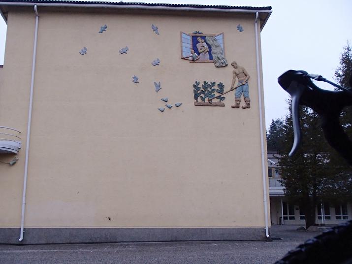Kivimaan koulun seinässä oli valistavaa taidetta. Paikka.