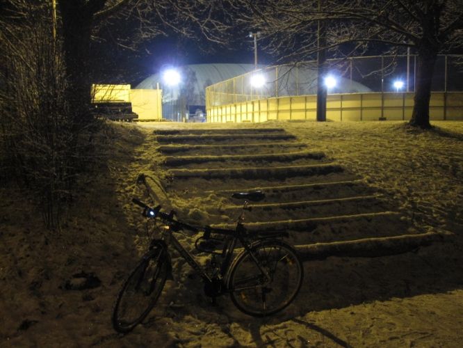 Fillari varmaan nojaa kuvassa penkkiä vasten? Paikka luultavasti tiedossa mutta fillari meni jo talviteloille :rolleyes: