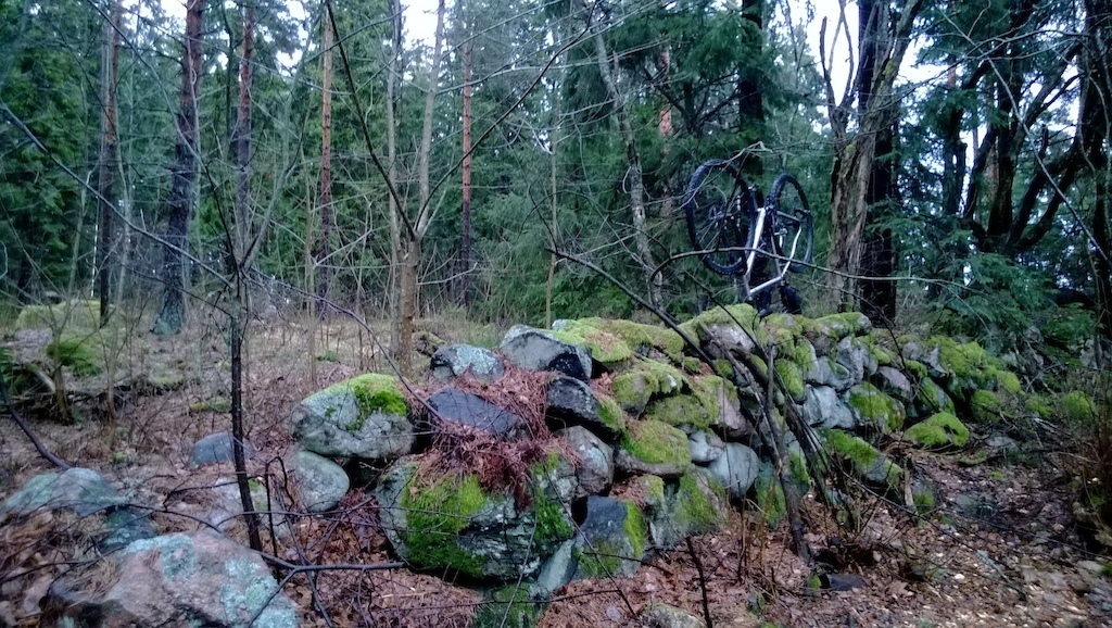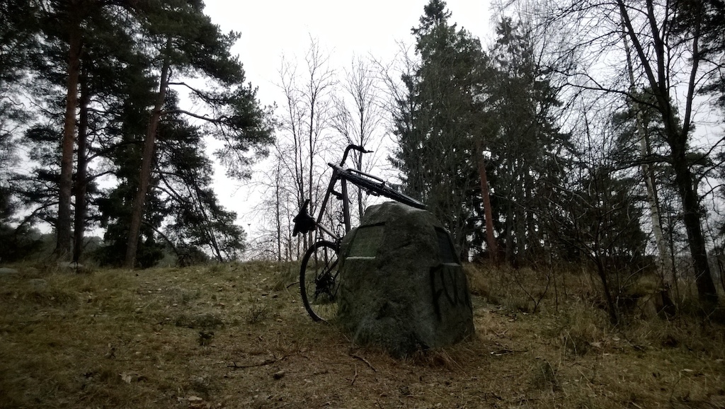 Ei ole tuollaisia rakennuksia eli ei linnamäki ole kyseessä. Oksista/ohuista puunrungoista tehty maja siellä on, mutta en viitsinyt ottaa siitä kuvaa kun siinä oli joukko pikkutyttöjä leikkimässä kotia tai jotain. Kannatan rastivihjeen lukemista huolella ja miettimään. Samanlaista polkua löytyy mistä vaan mutta rastivihjeet opastavat rastinluokse.
