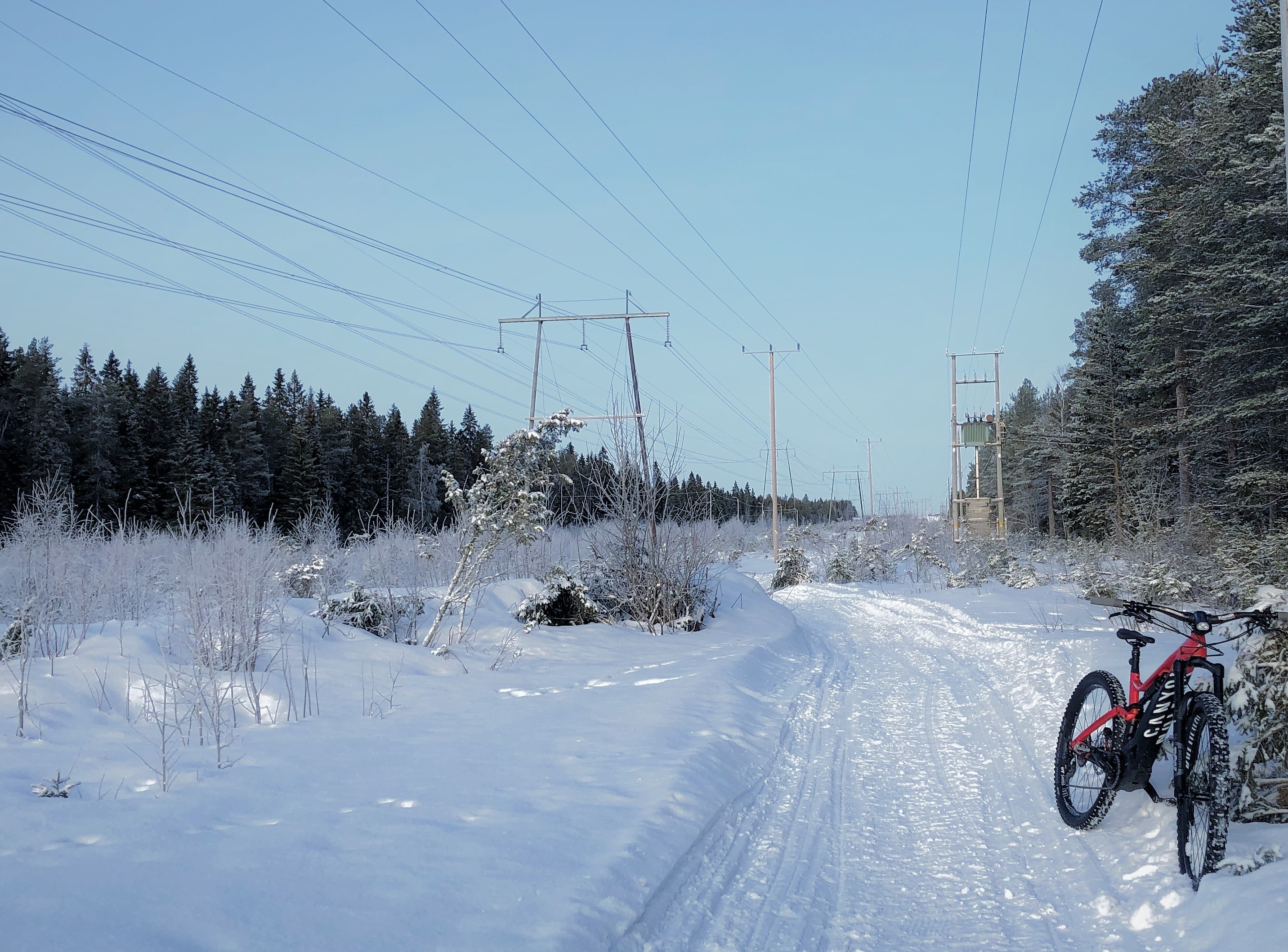 Talvella saa olla kiitollinen kelkkailijoille ja kävelijöille ajoreittien aukipitämisestä. Pikkupakkasella voi sitten ajella fillarilla ihan rauhassa. -18.