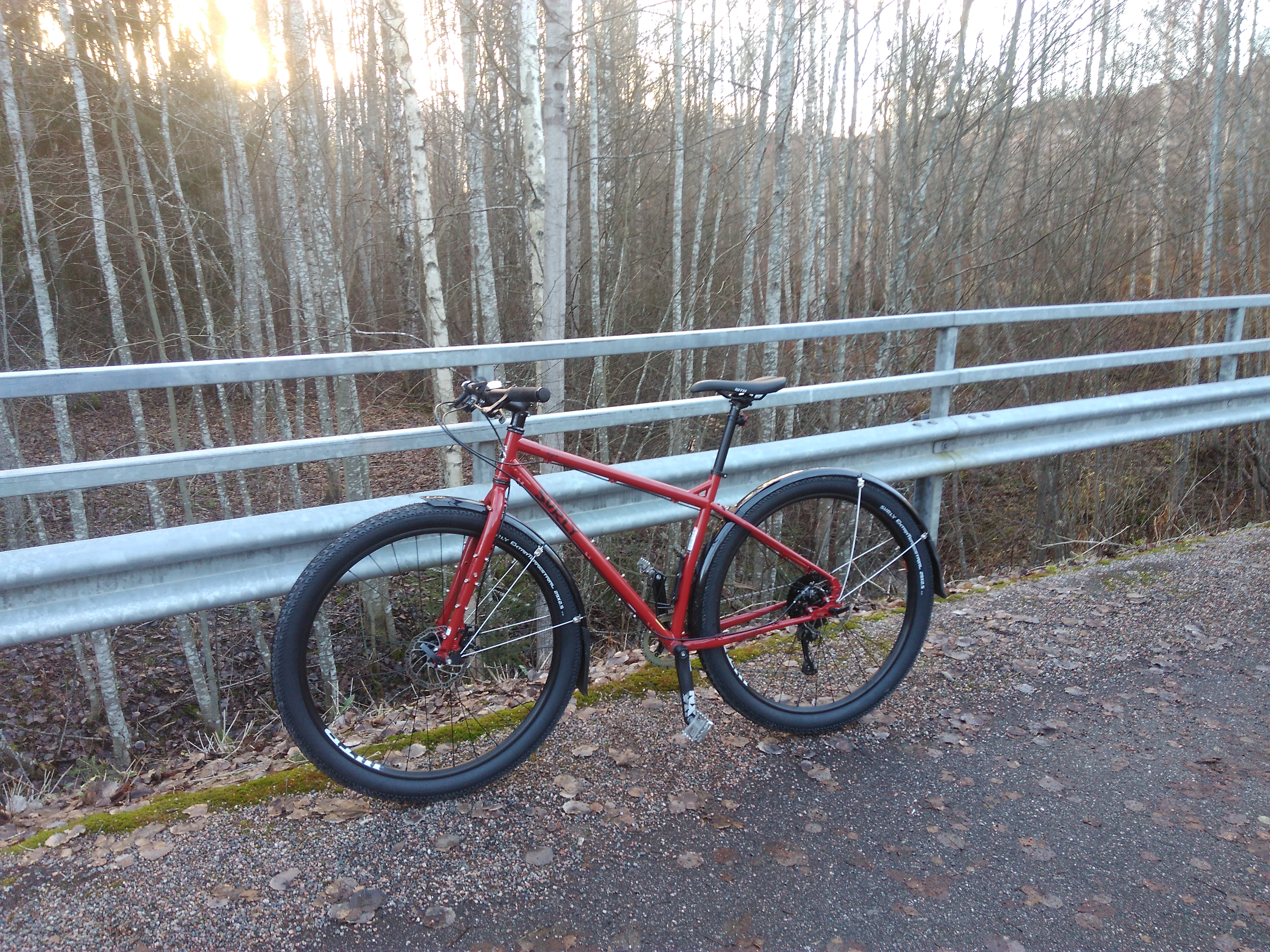 Surlyyn laitettu 42mm wtb:n resolutet tubelessina. Ajokokemus parani entisestään, toki ei tämä mikään vauhtipyörä ole.