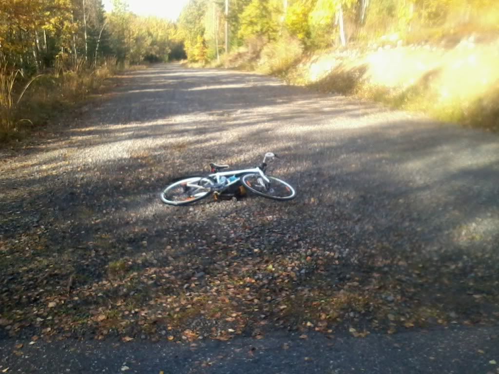 Rasti olisi tod.näk. löytynyt, mutta ei ollut muuten onni myötä. Poljin irtosi kesken ajon ja seurauksena vauhdikas kaato. Housut, takki ja kypärä rikki - äijä joten kuten järjissään ja kaikki jäsenet tallella. Että se sitten siitä rastista.