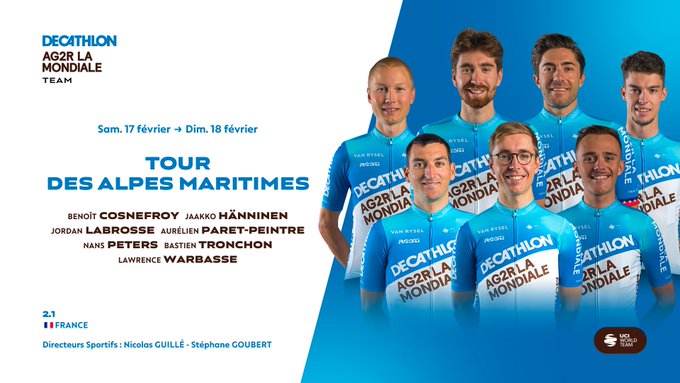 Nimet ovat tiimin tapaan aakkosjärjestyksessä (kuten täältä opin, kun en ollut sitä itse tullut hiffanneeksi) ja veikkaisin että Bouchard ja Lafay (jolla on tilillään osuusvoitot Girossa ja Tourissa, mutta joka kärsittyään pitkään polvivaivasta avaa vasta nyt kautensa) ovat niitä, joille lähdetään ajamaan. Mutta toivoa taas voisi että suomenmestarin paitaaan pukeutuva Hänninen olisi iskussa ja ajaisi niin hyvin, että tallin olisi pakko antaa hänelle mahdollisuus oikeaan kilvanajoon!