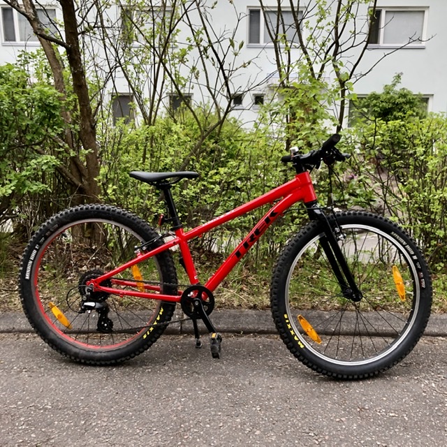Orbea MX 20 Team Disc -mallista on tarjolla myös upea violetti väri, joka ehkä enemmän tyttöjen mieleen :) Kannattaa muuten huomata, että vaihdehäkki ulottuu pyörän pienestä vannekoosta ja renkaan tyypistä johtuen melkein takakumiin asti. Tätä potentiaalista ongelmien aiheuttajaa ei MX 24:ssa enää luonnollisestikaan ole.