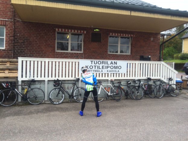 Lauantaina käytiin ylläehdotettuun tapaan Monninkylässä. Mustavuoren pikajuna kunnostautui ajamalla Hindsbyntiellä sattuneen rengasrikon jälkeen (sovitusti) matkaa jatkaneen porukan kiinni. (Minä säästelin voimia ajamalla pääjoukon mukana.) Kotileipomon pihasta lähdettäessä hepolaisten nopeampi ryhmä pääsi karkaamaan ilmeisesti kuvitellen sen missanneiden ainoastaan vaihtaneen hitaampaan ryhmään, joten Mustavuori express lähti perään ja ajoi sen nopeasti kiinni. (Minä muodostin hollantilaiskaverin kanssa semmoisen regional expressin joka sekin pääsi nauttimaan peesistä mm. ohitettuaan ensin yhden nopeammasta ryhmästä pudonneen ja kammen suoraksi laittaneen ajajan.)
