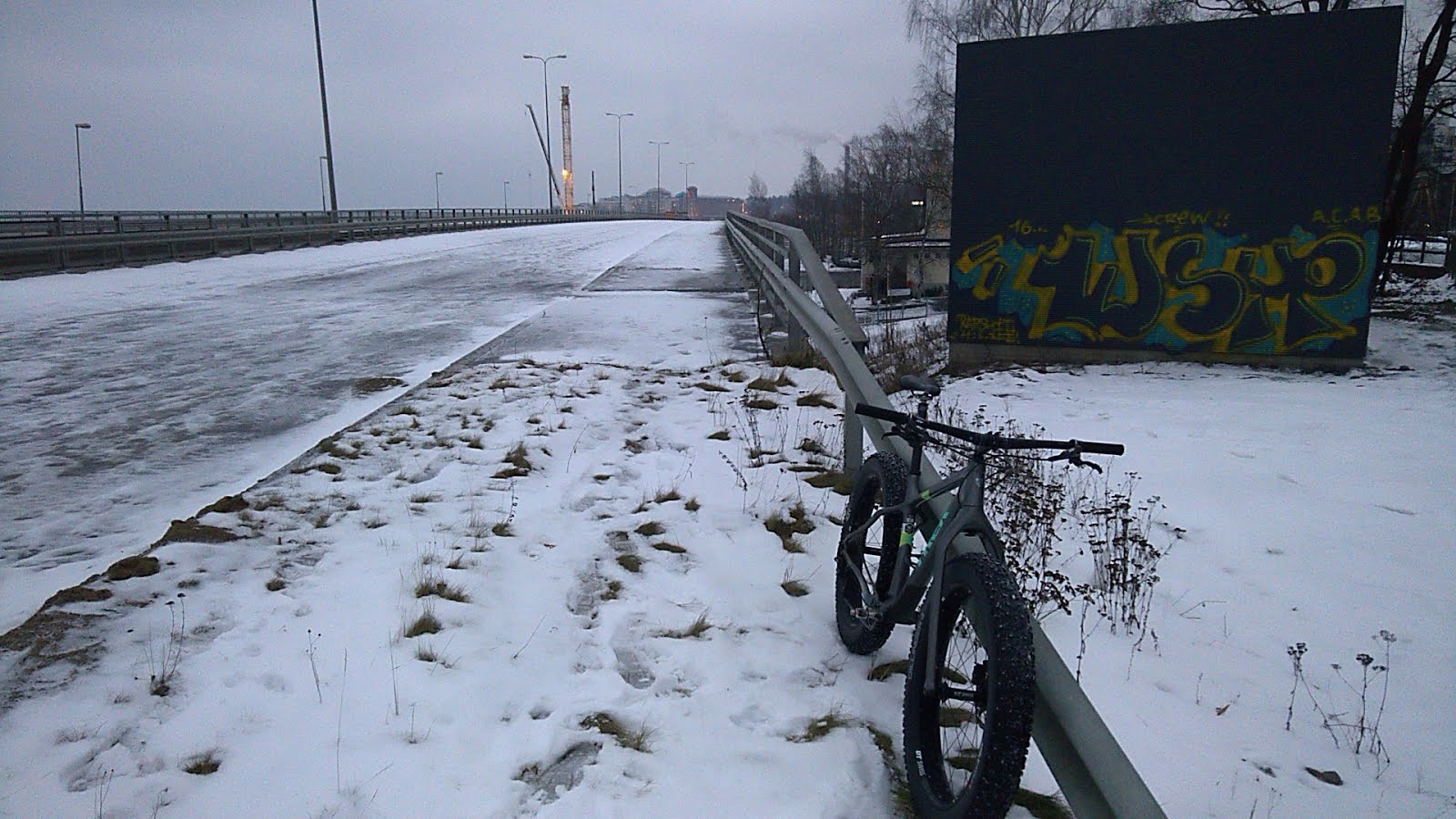 Olipa hyvä, että otitte kuvat maantiesillasta etäältä. Sehän olisi voinut betonin laadun puolesta sortua niskaan. ;) Periaatteessa tuon uuden voisi käydä hakemassa, mutta sähköratsun kaviot eivät pidä tällä kelillä.
