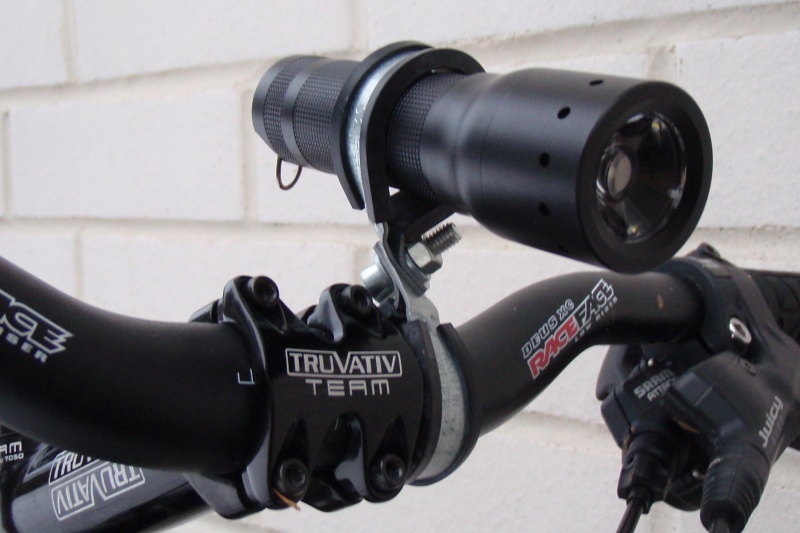 Itse käytän Led Lenserin P7 lamppua ja se on kiinni tangossa kahdesta kannakepannasta tehdyssä keksinnössä. Onhan tuo mallinimi hiukan harhaanjohtava, mutta tuo P on heidän mallisarja ja sieltä löytyy monenlaisia malleja, itselläni on P7 ja P5 mallit.