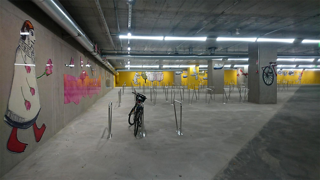 Rasti 1424 sijaitsee Tapiolan pyöräparkissa. Lokakuussa 2019 avautuneen yli 400 pysäköintipaikan laitoksen seiniä elävöittää Seela Petran laaja teos "Sinä päivänä".