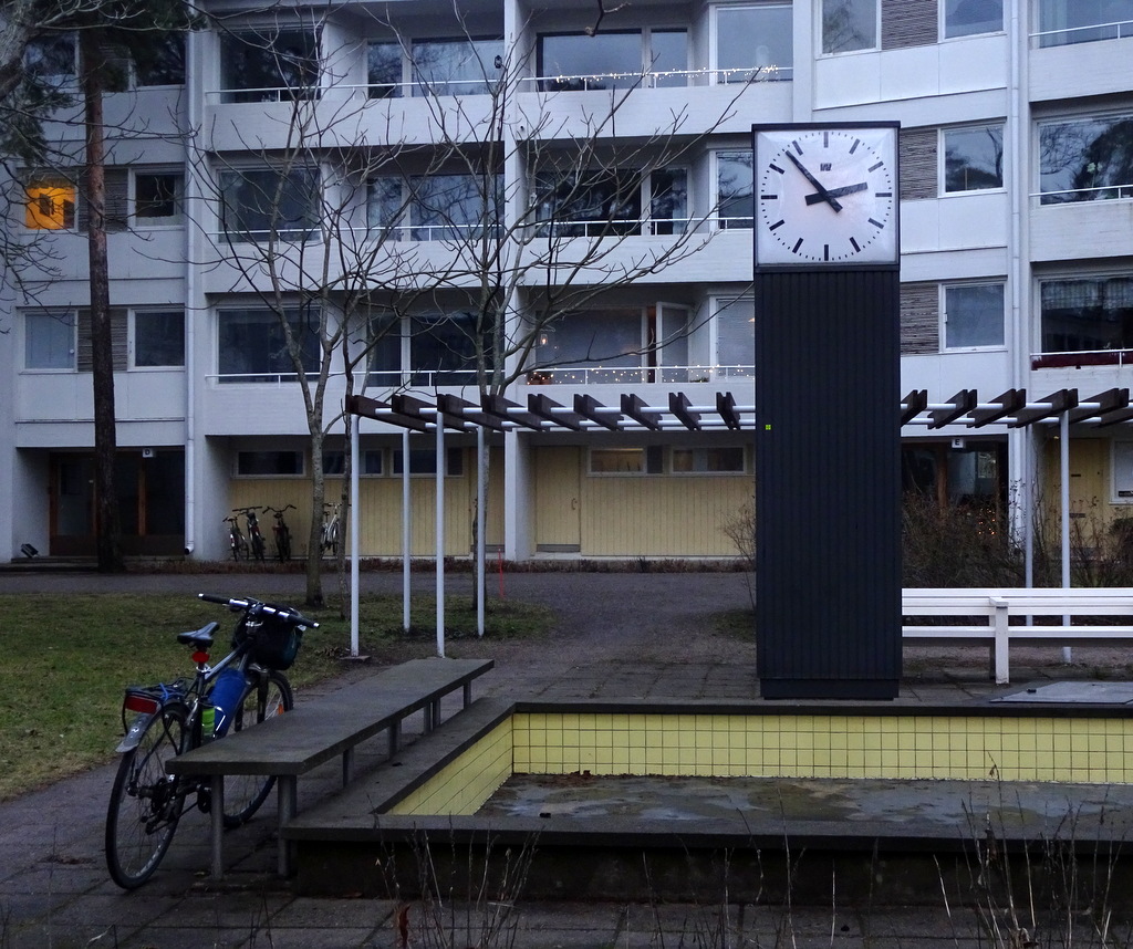Tämä Billypin energiatehokkaasti siirtämä rasti olikin Tapiolan kulttuurikeskuksen oven vieressä oleva aaltoseinä johon oli ruuhkaa. Silleen hupaisaa että pysäköin tuohon lähelle 50m päässä olleen BPilgrimin pädelirastin noudon yhteydessä mutten muistanut tuota .. vaikka hyvin usein tuosta tulee käppäiltyä pyöräparkkitelineistä sisälle