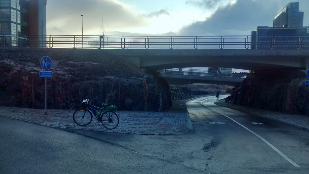 Uusi rasti edustaakin sitten taas suosikkiaihettamme eli kevyen liikenteen kiertoteitä. Jos tuo on se joksi sen kuvittelen, niin haen huomenna ja siirrän toiseen, jo hetken rastiaiheeksi suunnittelemaani alikulkuun. Tai sitten en.