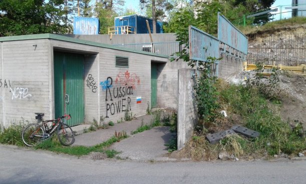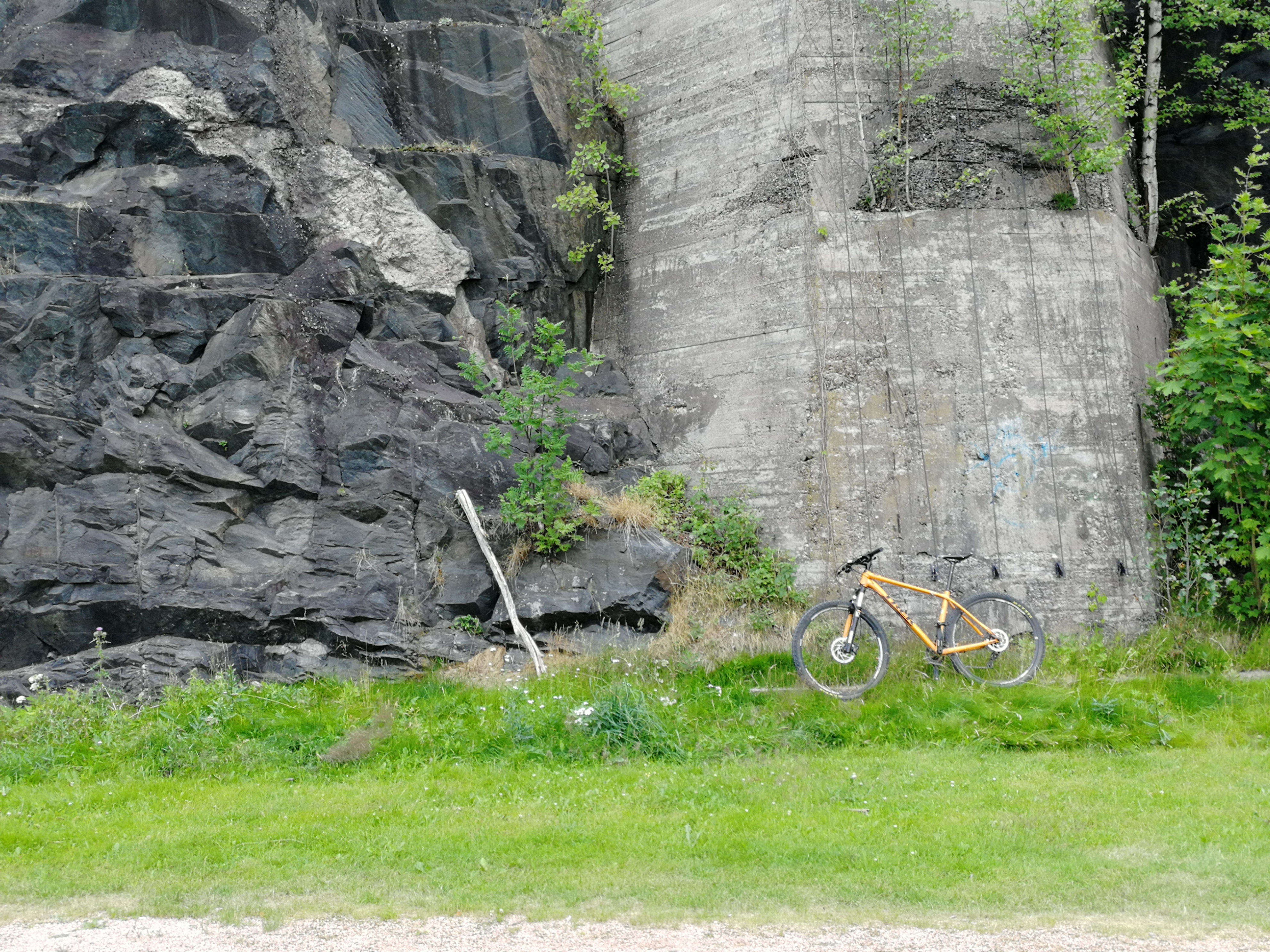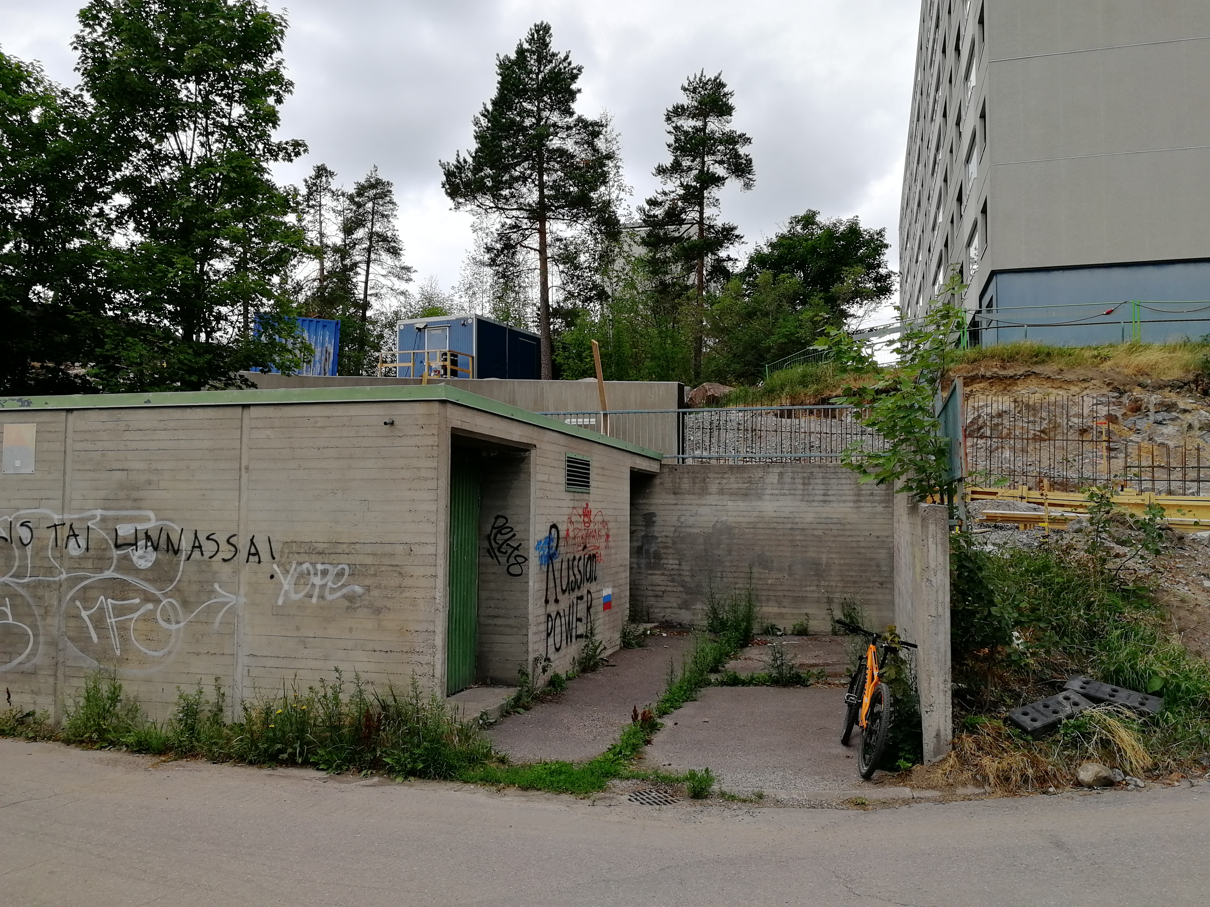 Mielikuvitukseni saati tietoni eivät riitä kertomaan, mikä tuo vanha betonirakenne on tai mihin sitä on joskus käytetty. Vieressä mäen päällä on joku tolppa jotakin varten.