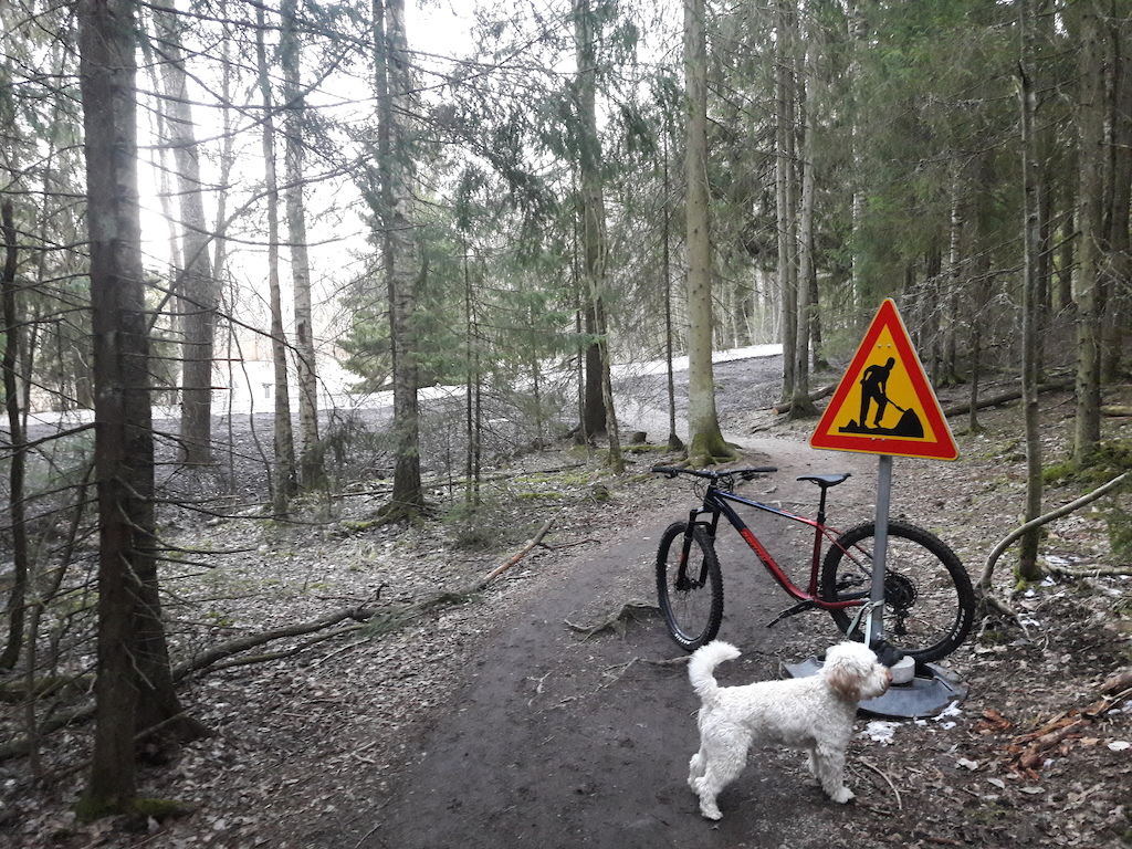 Uudessa on laitettu tietyömerkki metsäpolulle.