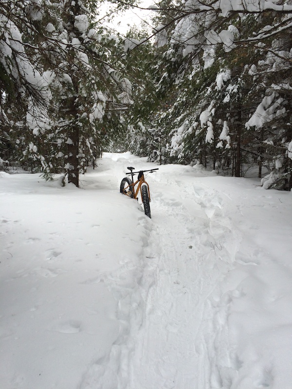 Kyllähän se on kateellisena todettava, että pienimunaiset jäävät paitsi isomunaisten iloista. Siinä kun 4.8" Lou pysyy hankikannolla jyystää 3.8 Nate vähintään puoliupoksissa ja koko hangella kikkailusta menee maku. Tottakai tuollakin pinnalla pysyis jos ensin tulis vesisuoja ja sen jälkeen tiukka pakkanen, mutta niissä oloissa pysyy hankikannon päällä jo ilman läskipyörääkin. Ja mulle ei siis tuohon Fat1:een taakse neljää tuumaa leveempi mahdu :(