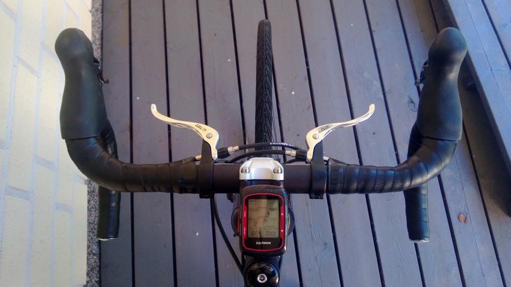Tuollainen. 710mm tanko ei näköjään mahtunut kännykameran kuvaan. Jarruletkuista mussutin jo itse toisessa topicissa.