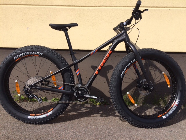 Äääh pikkasen ehdin rullailla kuvan 2016 Trek Farley on 15.5" ympäri parkkipaikkaa mutta sitten piti häippästä polkutalkoisiin.
