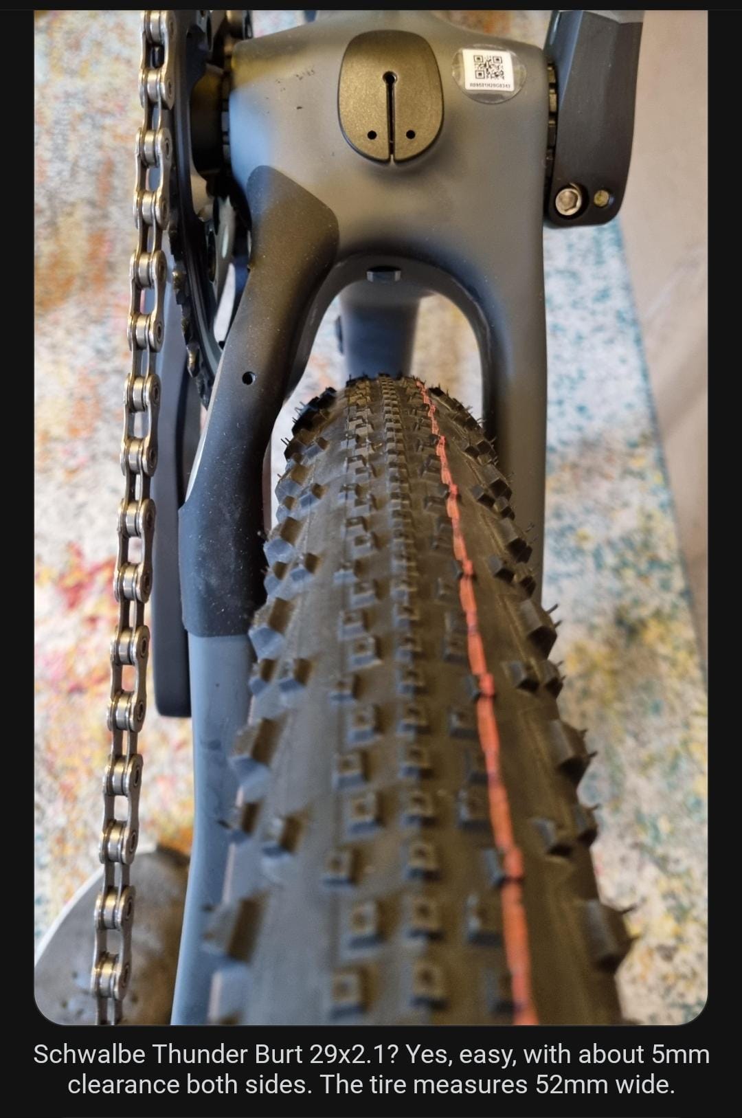 Mulla on thunderburt jollakin 24mm sisälevyisellä noname Dt swissi hässäkällä. Mahtuu hyvin. 2” raceking pitäs mennä muitta mutkitta. Tosin contsun muoto on sellainen kantti kertaa kantti verrattuna Schwalben.