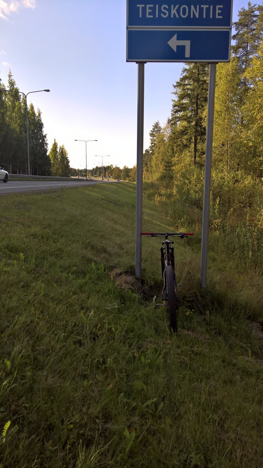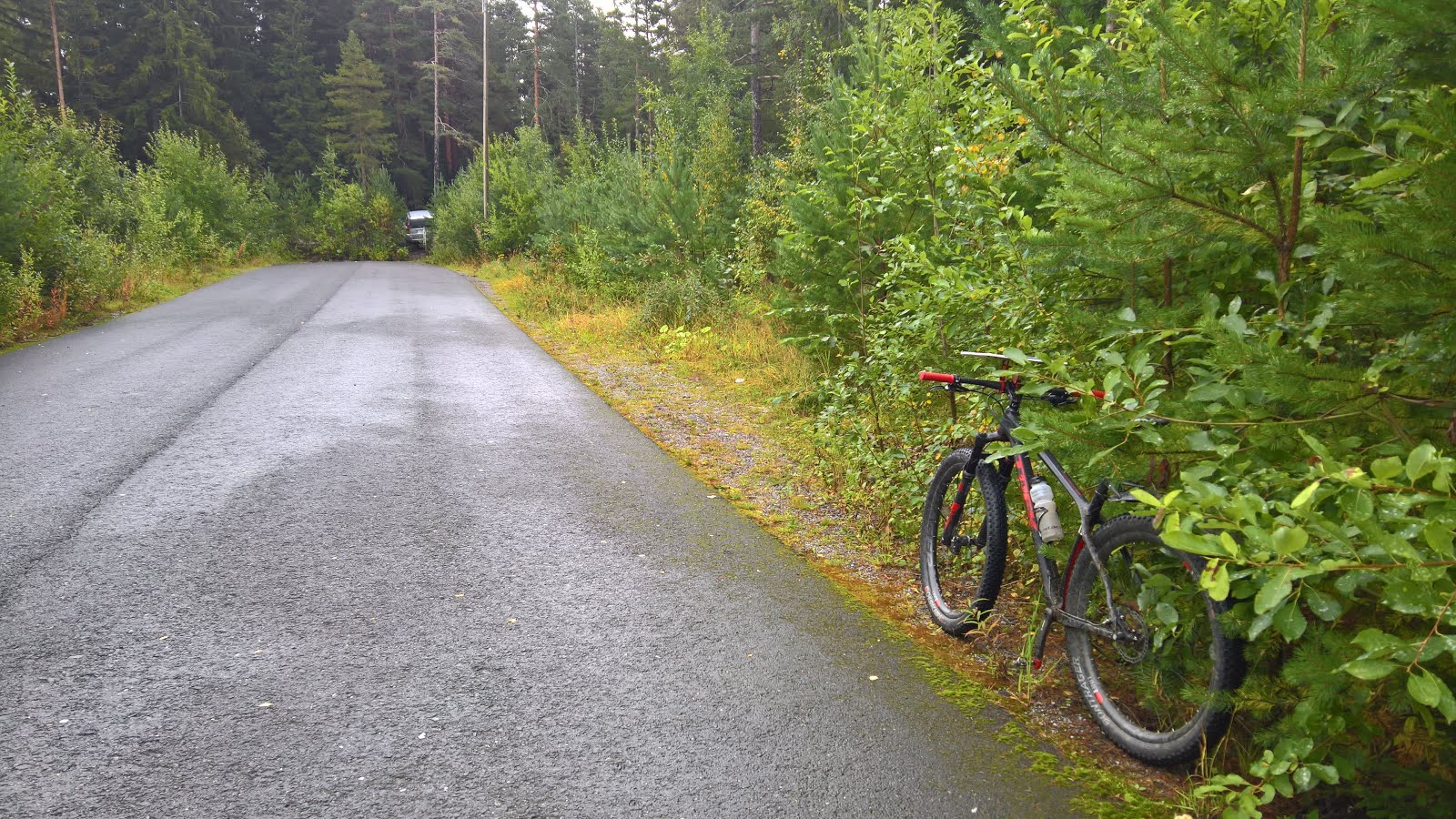 Tuli kanssa ajettua siihen toiseen suuntaan mutta halusin nuo rakennukset kuvaan ja siksi otin tällaisen kuvan. Nyt ilmeisesti jännitetään kestääkö rasti yön yli vai rullaileeko sähköavusteinen paikalle yön aikana.