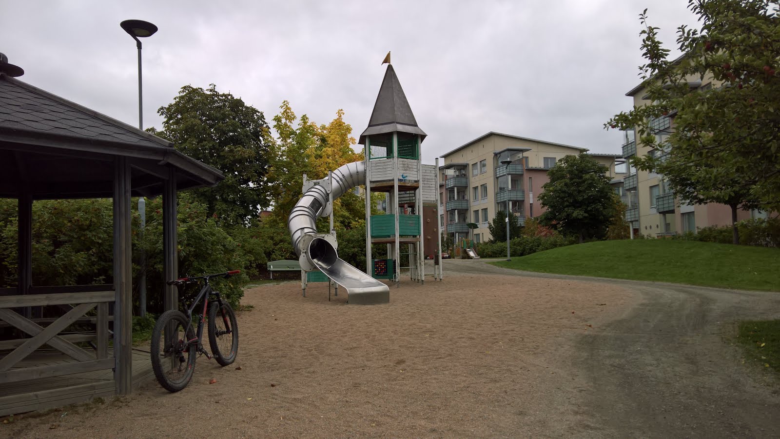 Jos tähän vinkkiä jakaisi. Tampereen puolella ollaan. Pelikenttä on sen verran uusi ettei näy kuin Karttapaikan ilmakuvasta. Mutta leikkipuisto sekä taustalla olevat talot taas löytyvät joka paikasta.