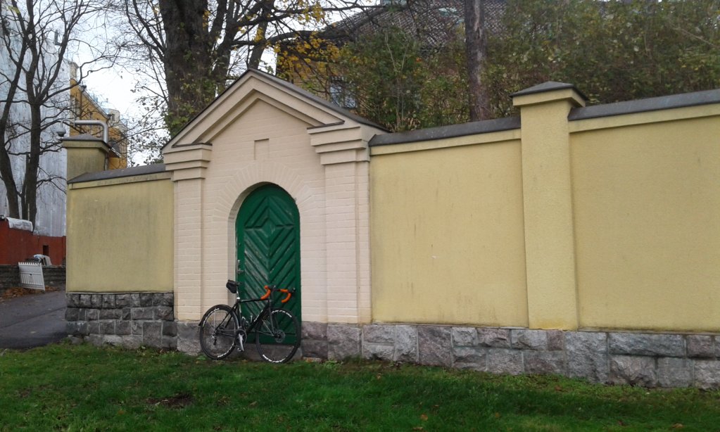 Viikonlopun päätteeksi pieni yöllinen Tour de France ja todennäköisesti päätyminen kuovin seuraksi DGSE:n kuva-arkistoihin. Rasti 1425 oli Kaivopuistossa, kuvassa portti Ranskan suurlähetystön takaa kulkevassa muurissa.