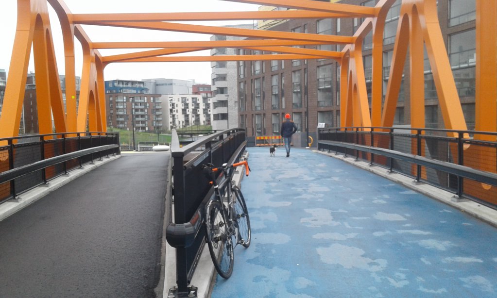 Rasti 1424 oli Välimerenkadun ylittävä oranssi kevyenliikenteen silta Jätkäsaaressa.