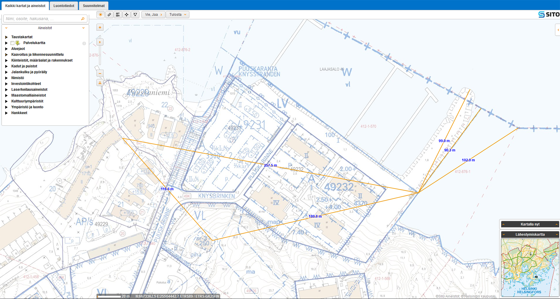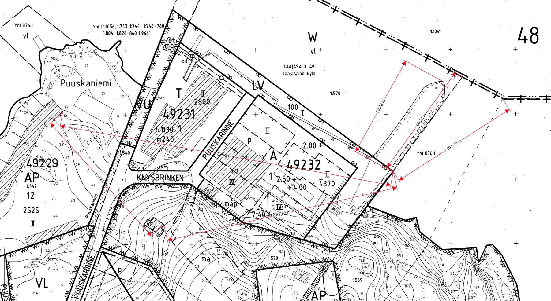 En suostu uskomaan että kukaan olisi ollut niin hullu että olisi päättänyt että Puuskaniemi, pienvenesatama ja aallonmurtaja kyllä kuuluvat Laajasalon kaupunginosaan, mutta aallonmurtajan kärki kuuluukin Vartiosaaren kaupunginosaan. Ei byrokraattikaan niin hullu ole, jos sille ei ole byrokraattisia perusteita. Uskallan arvella että tässä tapauksessa digitaalinen rajaviiva digitaalisella kartalla näyttää väärin eli on kartanpiirtäjän moka.