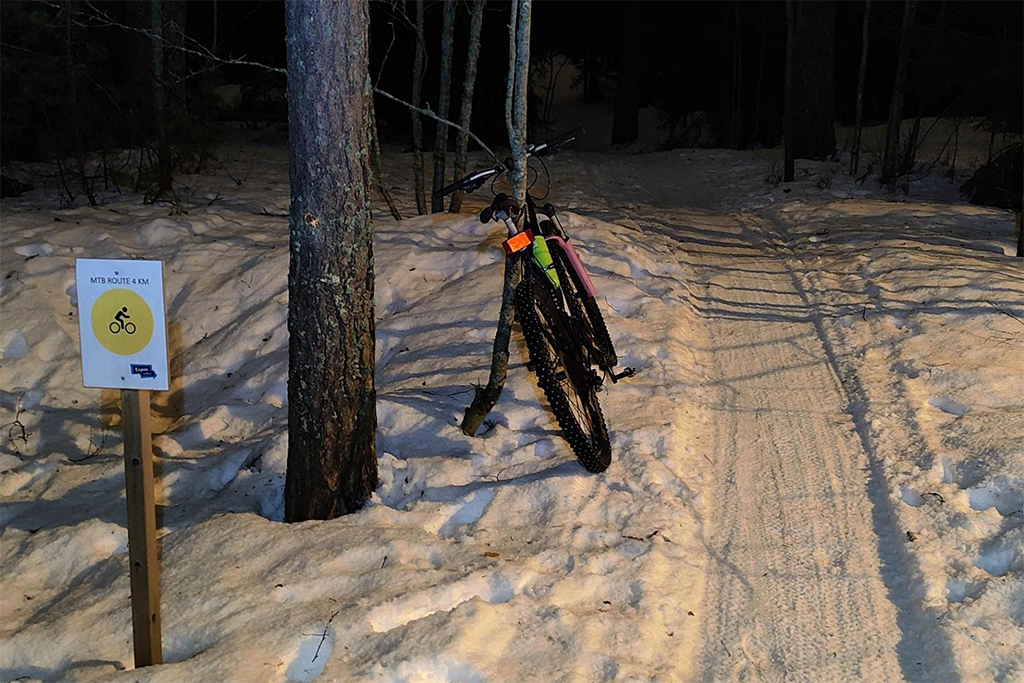 Maastopyörälenkkiä sai ajaa pitkään, ainakin 10m, ennen kuin tuli oikean näköinen kohta. Oli sen verran pehmeätä ja urille ajettu, ettei kovin pitkään viitsinyt kiertää.