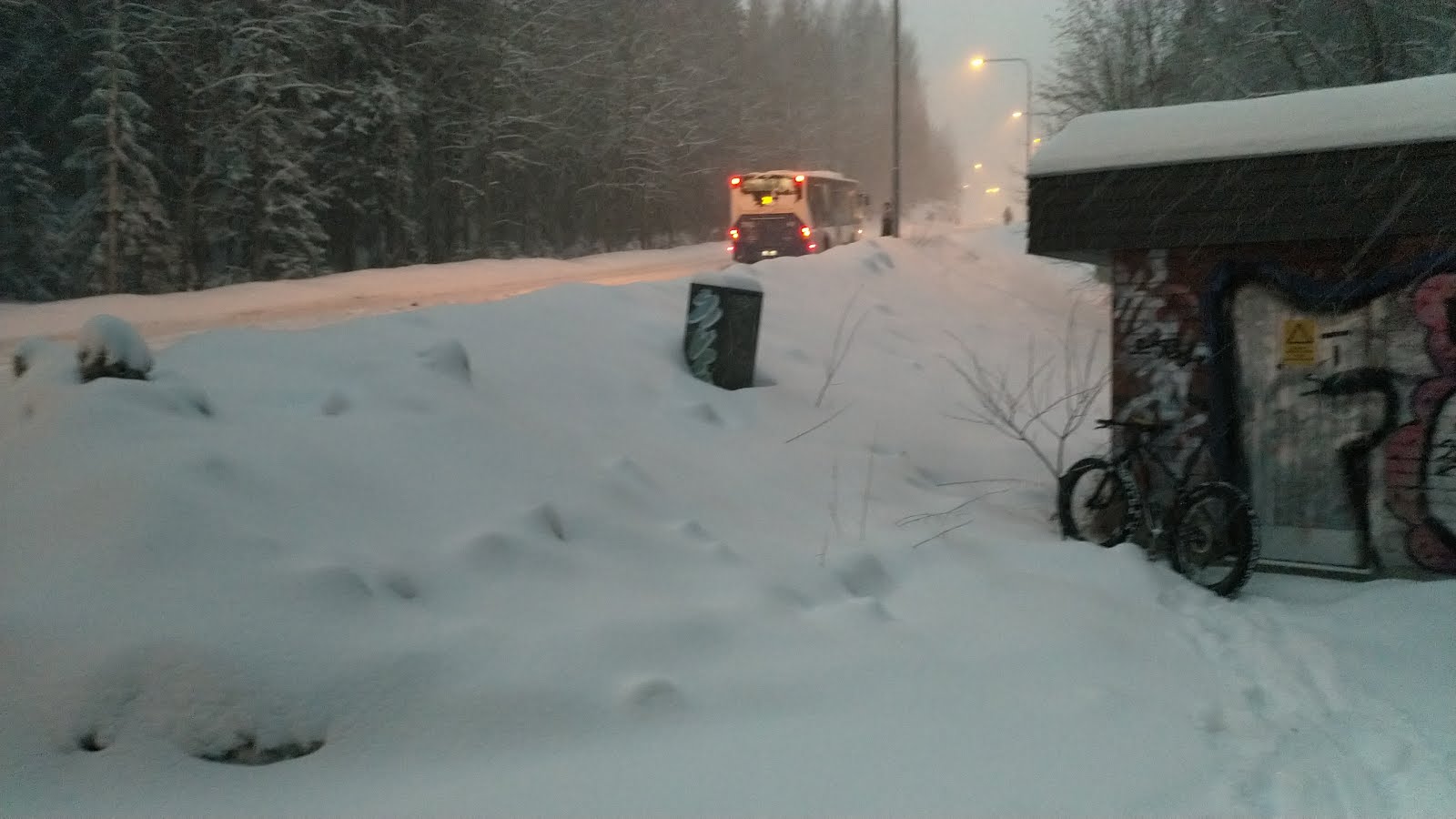 Ei kai tämä nyt vaikea ole? Vinkkinä, että bussi oli jumissa tuossa