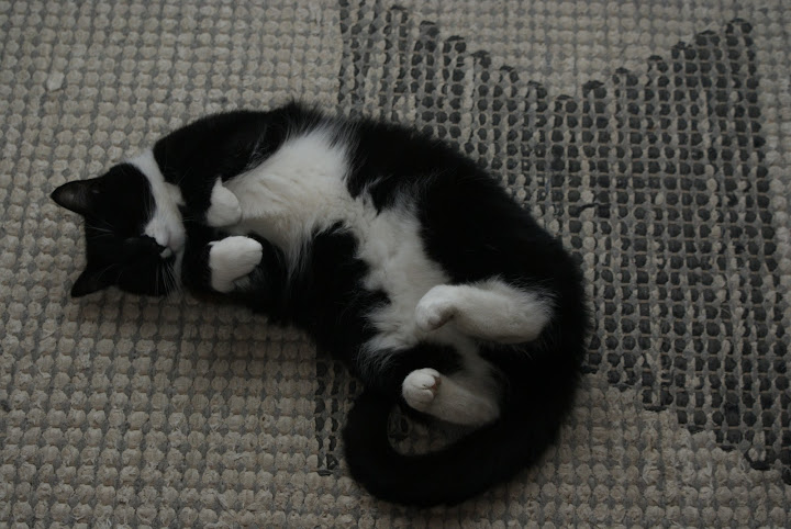 Nyt onkin sit sekanen kissa. Kävelee kuin kolmen promillen humalassa ja putoilee sohvalta ja nukahtelee ympäriinsä.