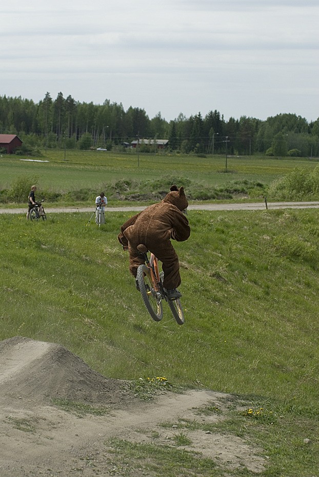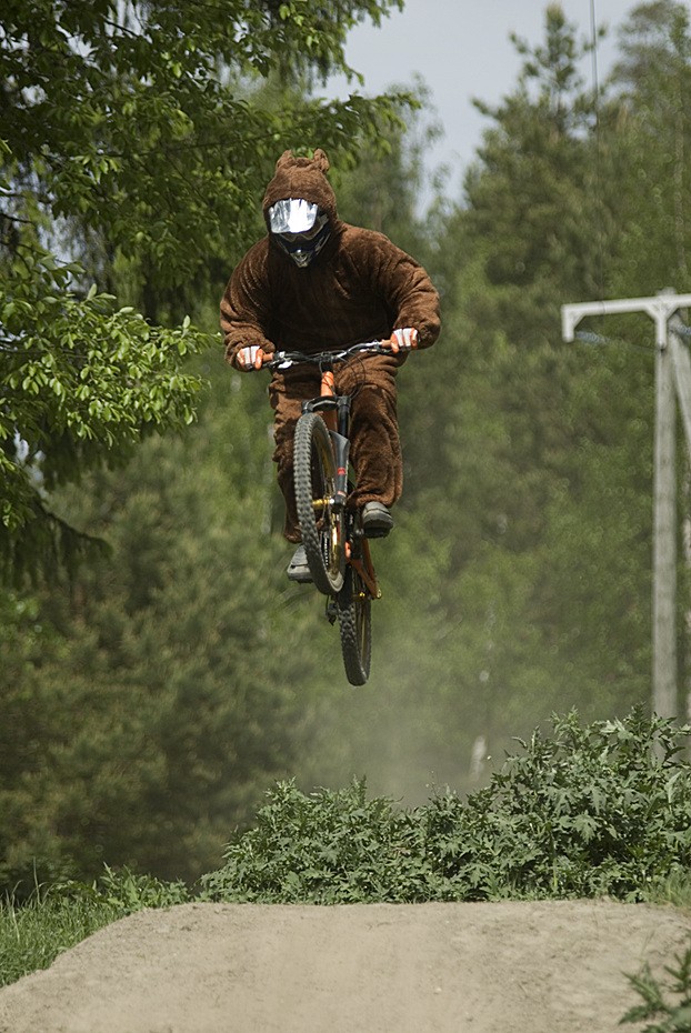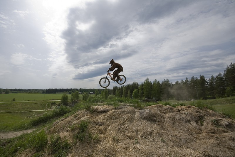 Alkaa Einolla oleen aika hyvin ilmaa hypyissä. Pitää huomenna hommata fullface-kypärä.