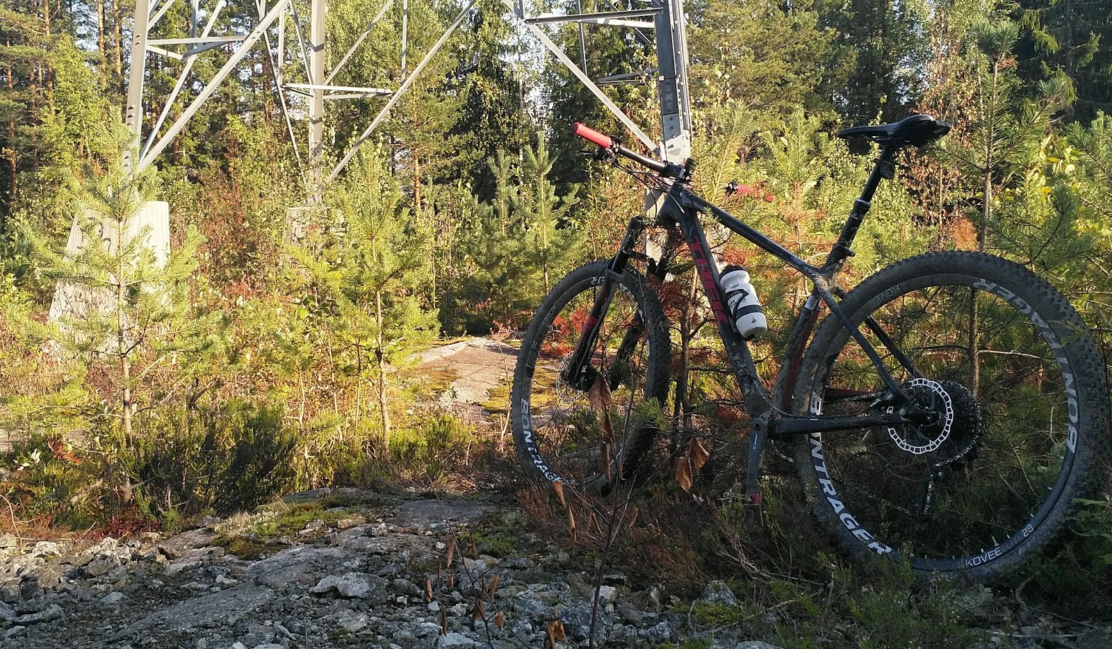 Tuollahan eilen seikkailin, mutta etsintä jäi vähän kesken, kun sähkölinjaa Ilkonnotkoon laskiessa keppi katkaisi takakiekosta kaksi pinnaa. Ei auttanut kuin nilkuttaa kotiin ja kaivaa varapinnat esiin.