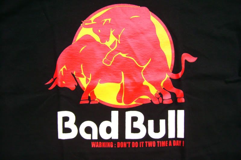 Asiasta porukan paitoihin. Saataisiinkohan Bad Bull sponsoriksi? On se vaan komia paita: