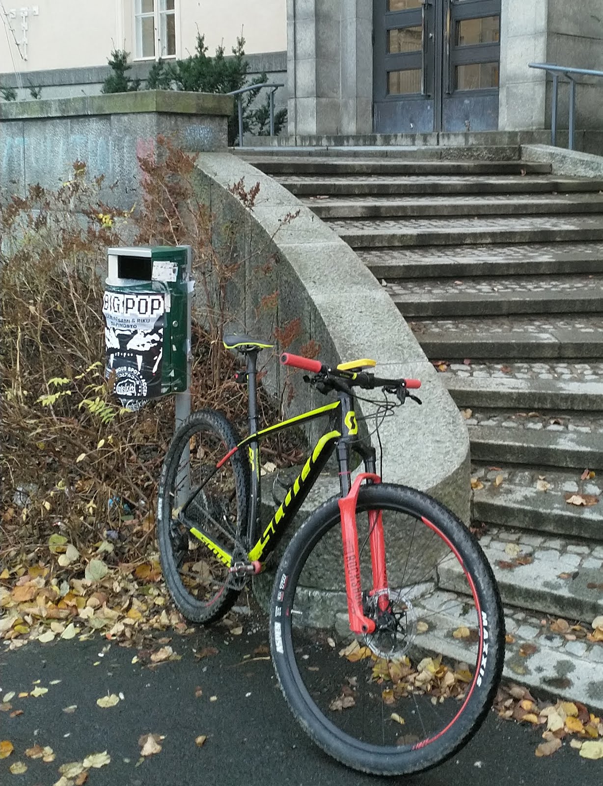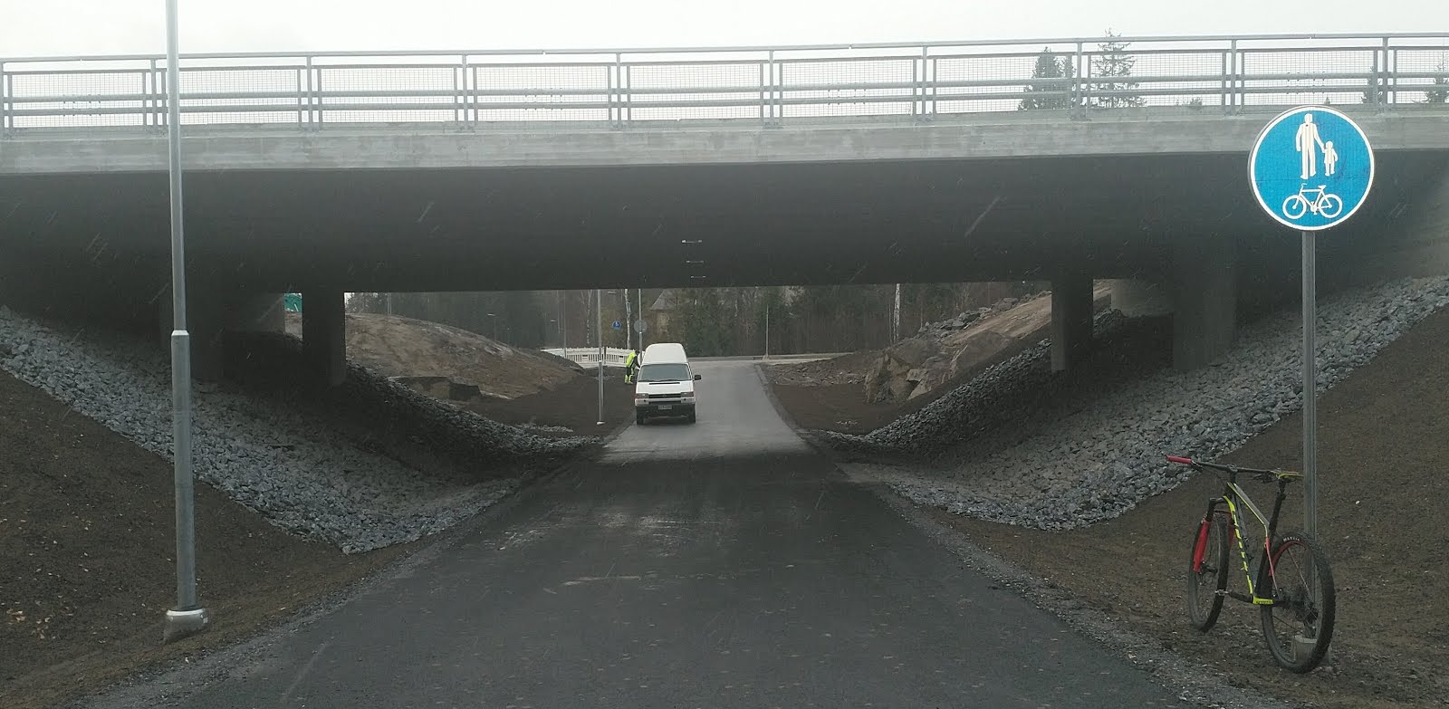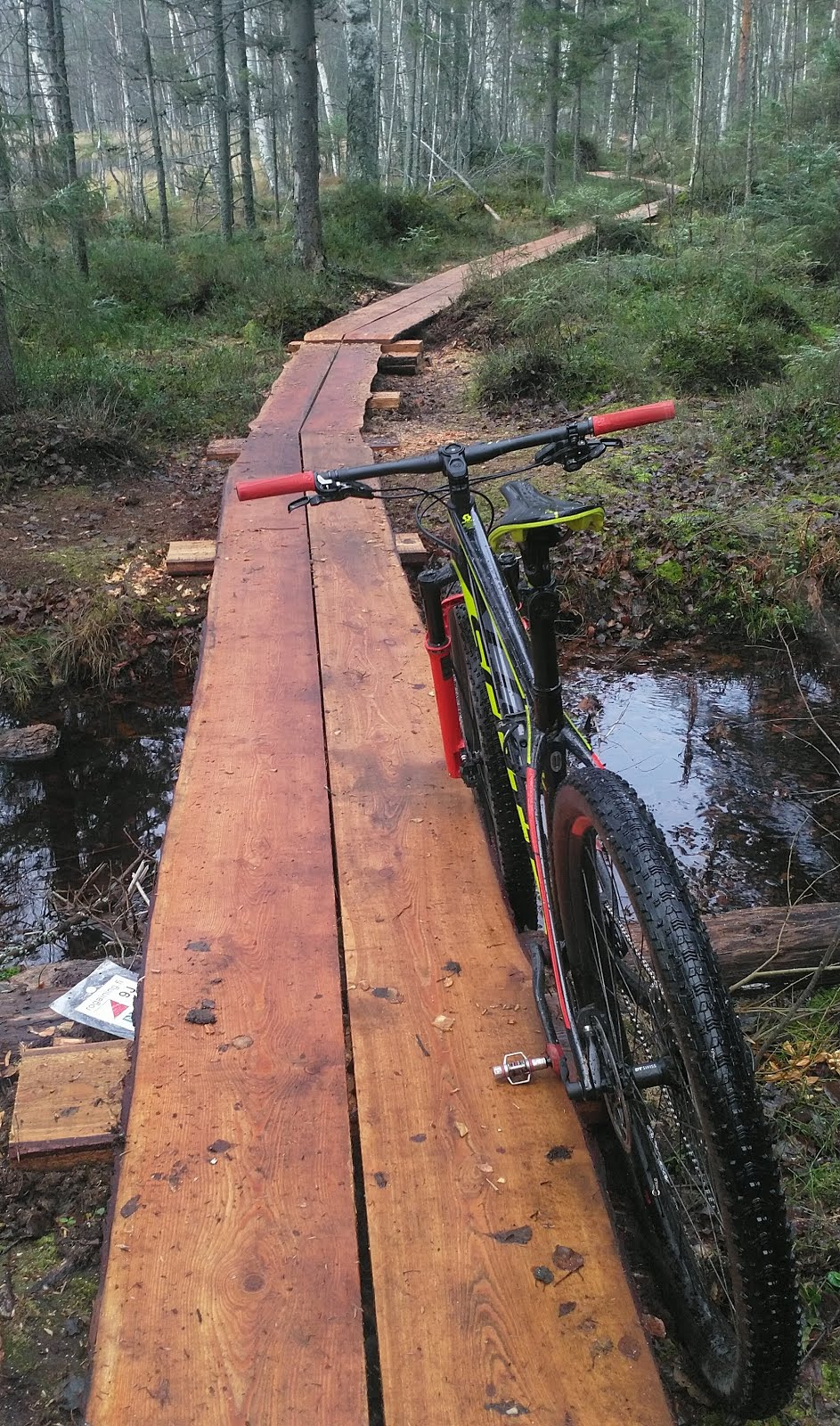Vihje: Päivän cyclolenkki ajettiin tänään tästä. :) Polku päättyy suon/maankaatopaikan läpi menevälle tielle ja taustalla näkyvässä kyltissä lukee St***.