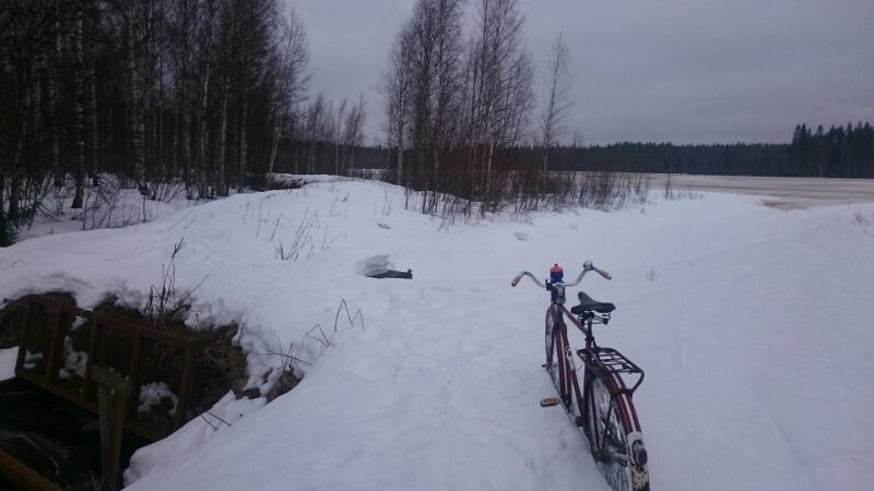 Vinkkinä; kuvan taustalla näkyy järvi.