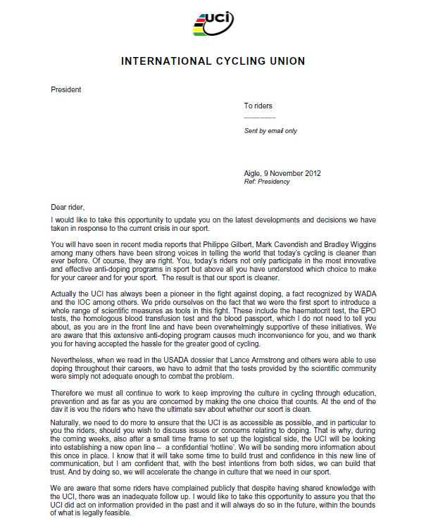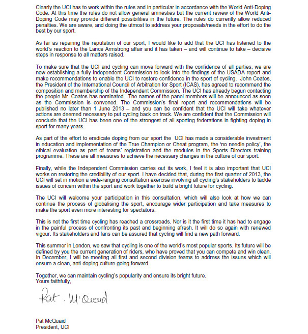 Mistään "virallisemmasta" lähteestä en onnistunut tietoa löytämään. En esimerkiksi UCI:n sivulta. Mutta hehän ovat todenneetkin, etteivät he peittele dopingkäryjä.