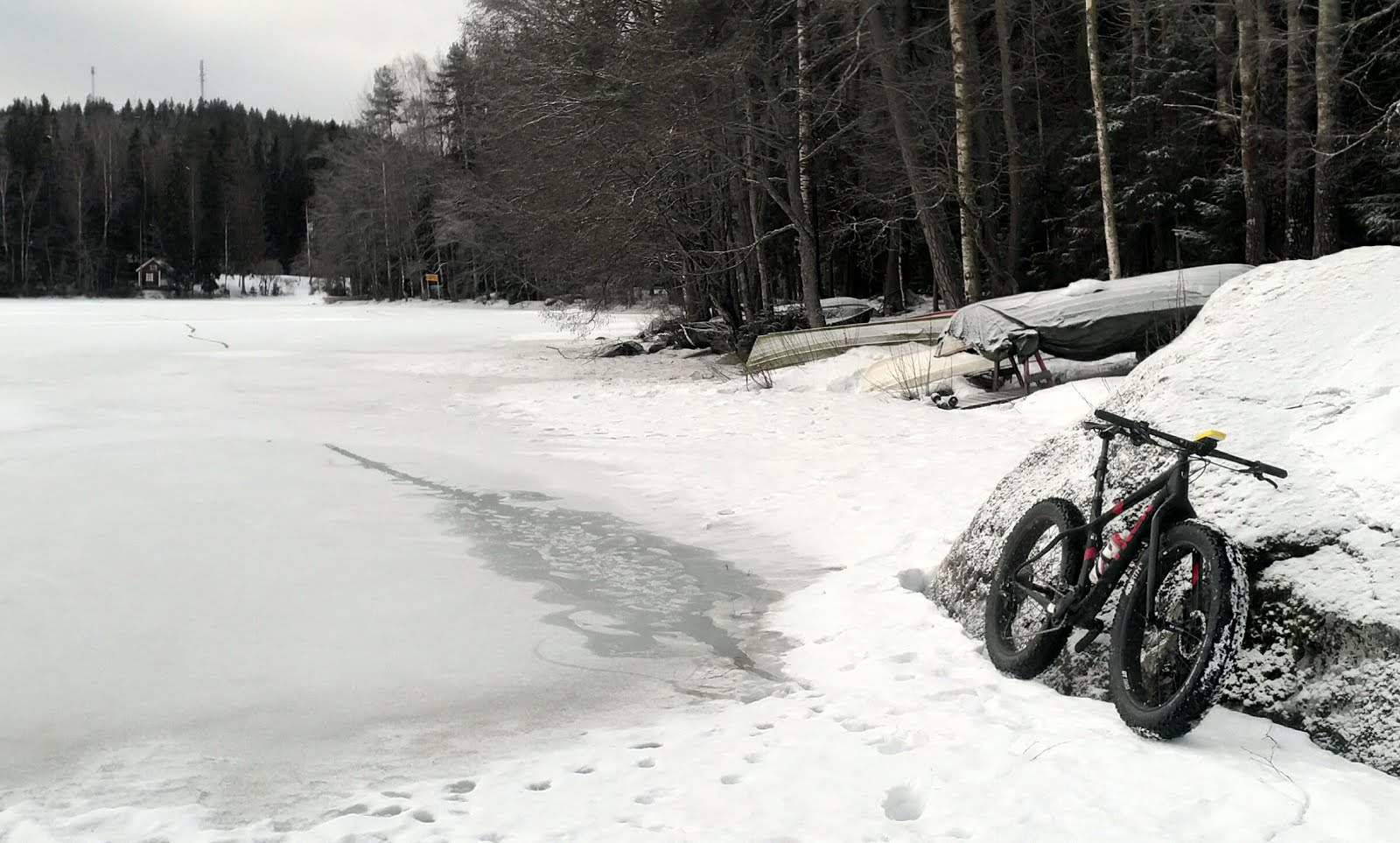 Pääseekö tuolla jäällä etenemään kapearenkaisella, jos vaikka innostuisi hakemaan.