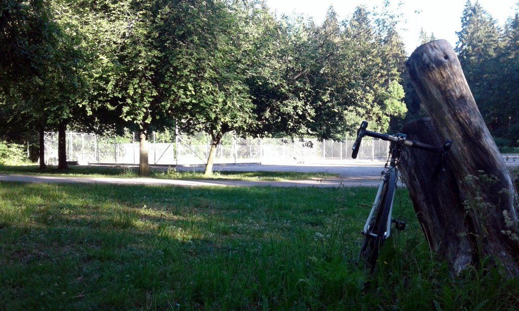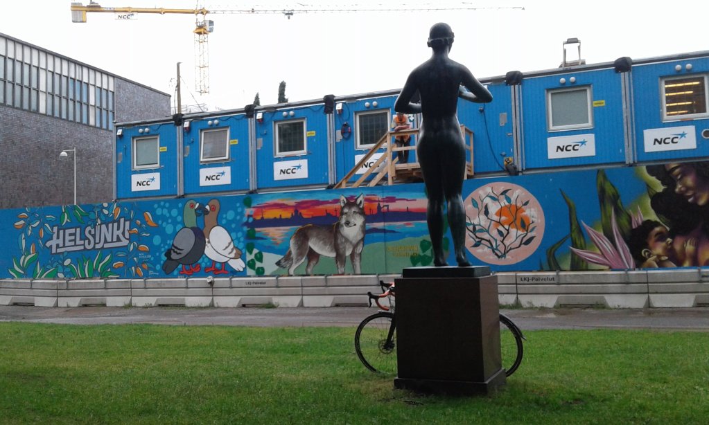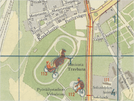 Meluestettä en tunnistanut, mutta älysin sentään että tuossa ollaan bussipysäkillä. Meluesteeseen en ole tainnut kiinnittää minkäänlaista huomiota pyörän satulassa istuessani, mutta sen takana näkyvään taloon kylläkin. Sitäkään en ole osannut sen enempää ihmetellä, olen vain arvellut sen olevan Käpylän raviradan perua ja nykyään jonkinlaisena liikuntapuiston kentänhoitajien tukikohtana tai vastaavana - mutta sehän onkin tosiaan asuinkäytössä mikä puolestaan selittää tuon muuten oudohkon meluestepätkän.
