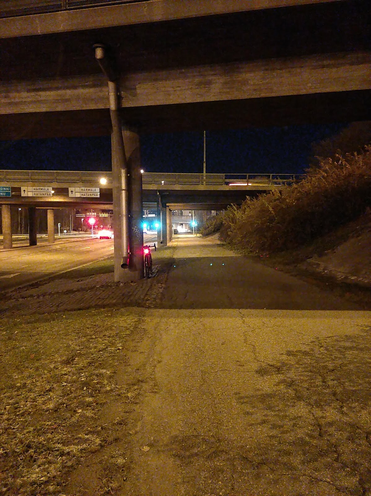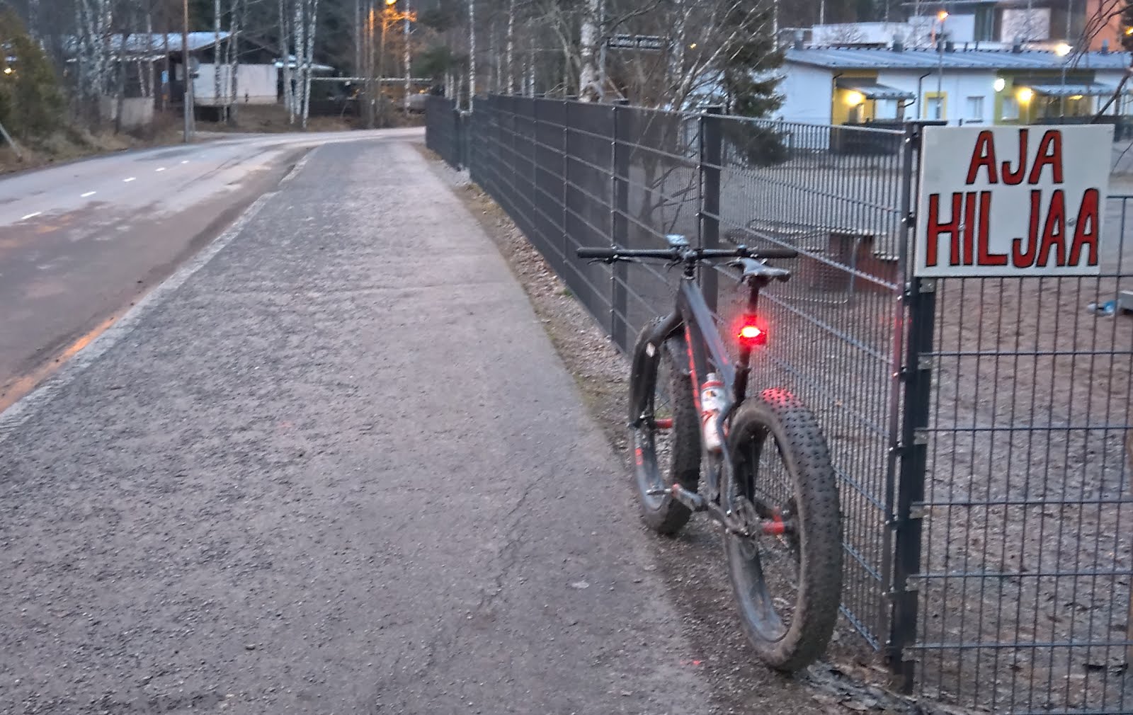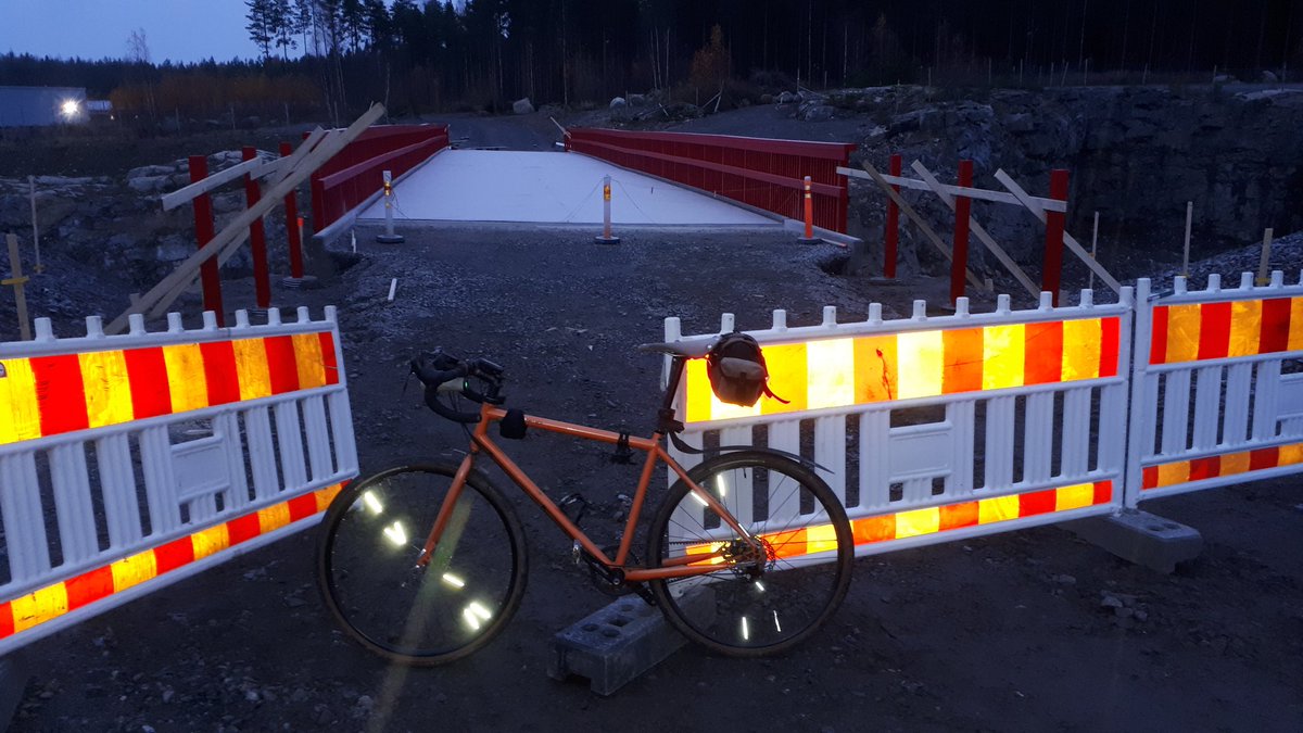 Tämä on umpiperällä tällä hetkellä. Teknisesti varmaankin pääsee läpi, eikä liikennemerkitkään estä, mutta tekstit sanoivat, että "Reitti suljettu"...