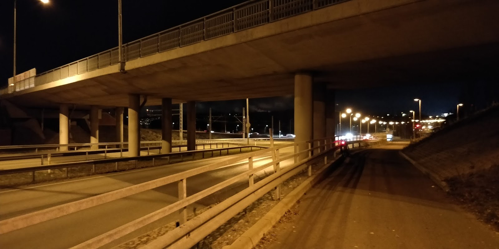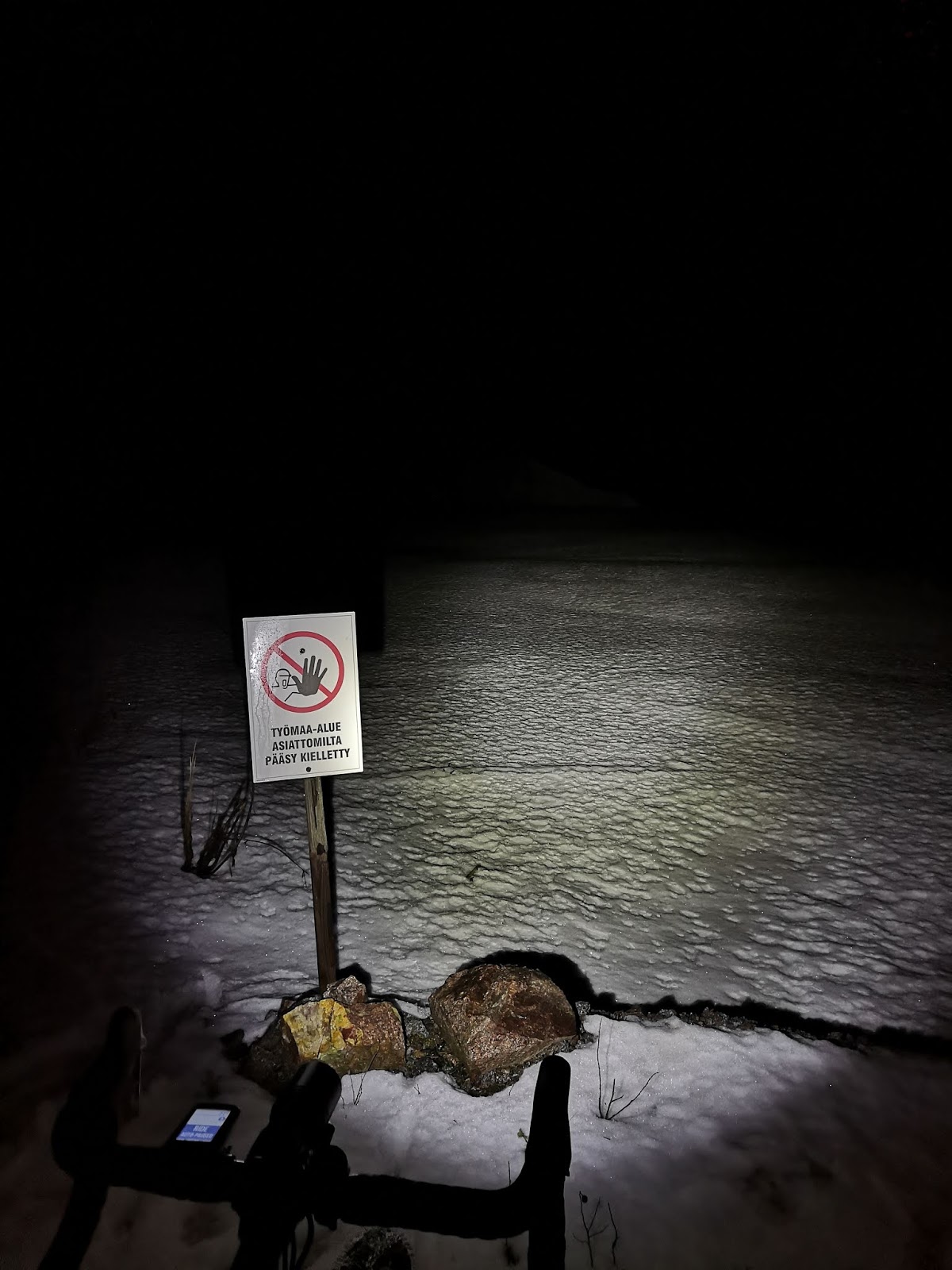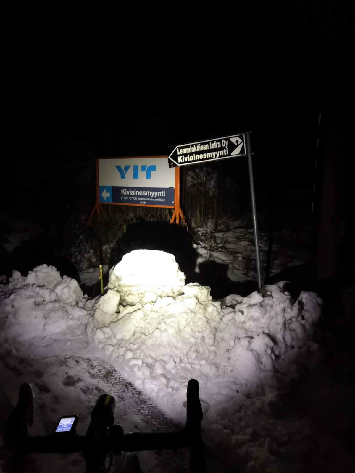 Tämä on umpiperällä tällä hetkellä. Teknisesti varmaankin pääsee läpi, eikä liikennemerkitkään estä, mutta tekstit sanoivat, että "Reitti suljettu"...