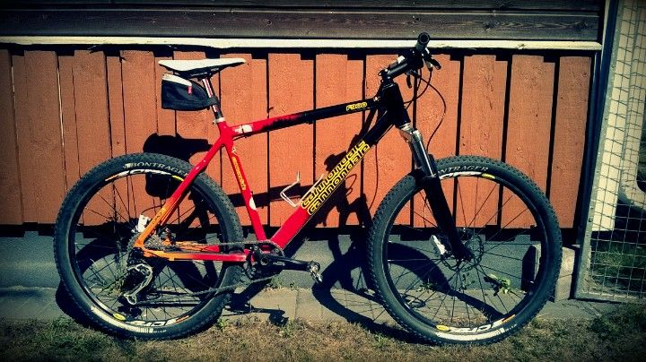 Eka koeajo tehty, hyvältä vaikuttaa. Renkaat on luonnossa vielä isomman näköiset kuin kuvissa. Jarrut on tosin vielä kuumottavan huonot, vaijerinkuoressa vaurioita niin joustaa, eikä pelkkä taka-cantilever nyt muutenkaan niin tehokas ole..