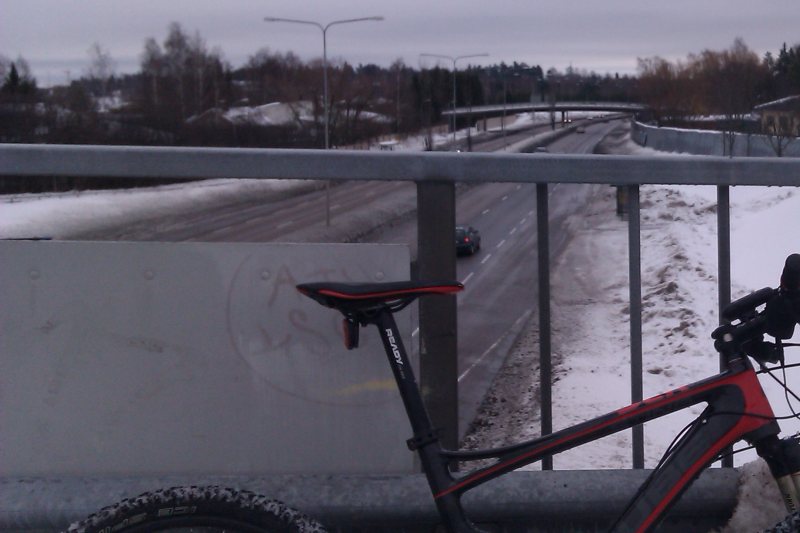 Kyllähän tuo löytyis, mutta keli ei houkuttele yhtään lähtemään cyclolla ulkoilemaan. Läskipyörällä vois mennä jos omistais.