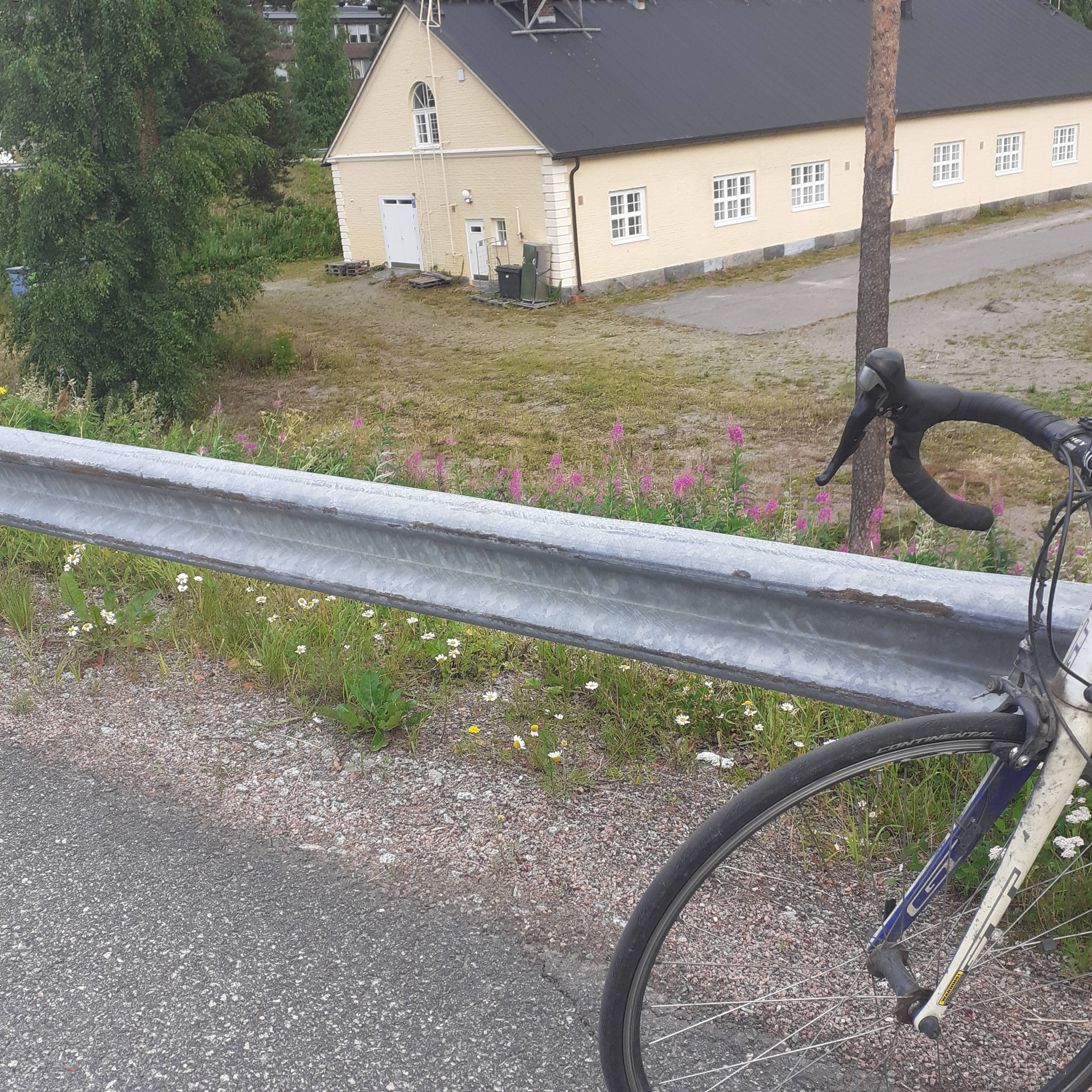 Satuin olemaan juhannuksen vietossa Jyväskylässä ja majoituksen palveluihin kuuluu kaksipyöräisen kulkineen lainamahdollisuus ilman lisämaksua, niin ajattelin vilkaista, mitä tälle osastolle kuuluu. Harmillisesti Jältin linkki ei enää toimi, mutta jospa hecen jättämän rastin noukkiminen välttää. Toivottavasti kukaan ei ehdi tässä runoillessa ensin... Mutta siis vanha oli Bilteman/Plantagenin takana olevalla kukkulalla, jolla varmasti on nimikin. Aidan takaa löysin koko lailla samanlaisen kuvakulman, joten tuskin on kovin kaukana.