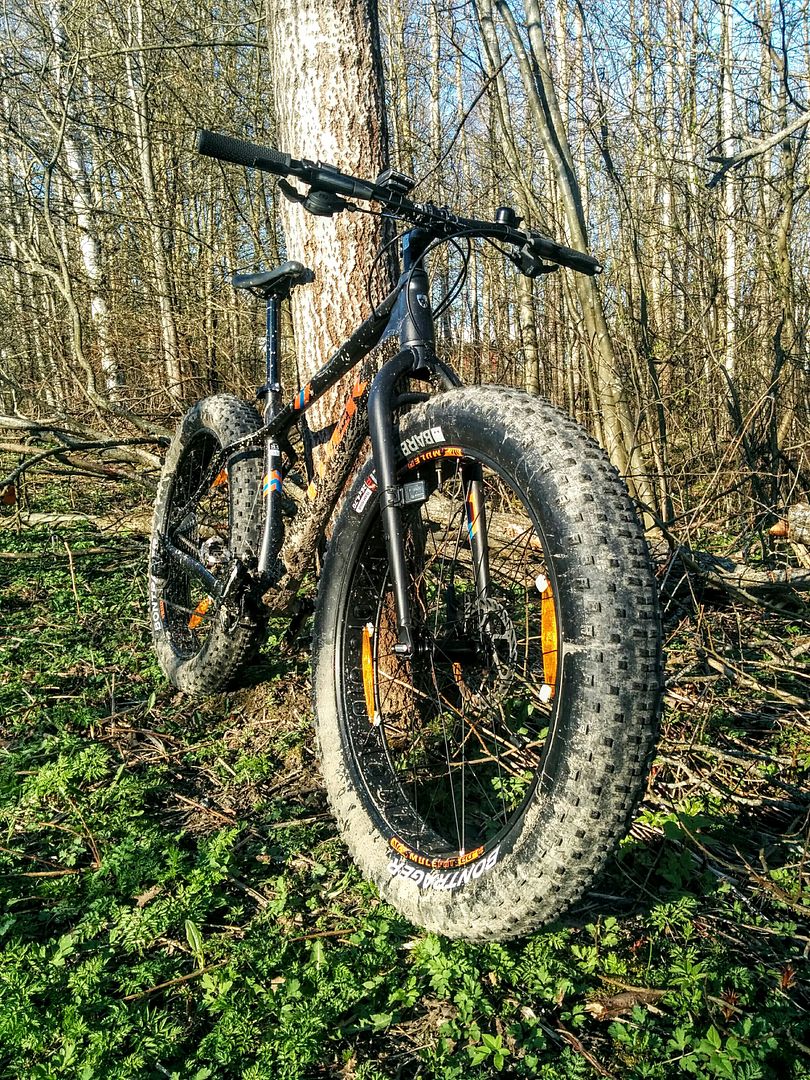 Stache 5 29+. On kyllä upea pyörä. Vähän viritetty: XT:tä jarrut, pakka ja ketjut. Lisäksi E13 42t iso ratas. Läskillä ja 29eril ajaneena voi sanoa, että tässä yhdistyy molempien pyörien parhaat ominaisuudet.