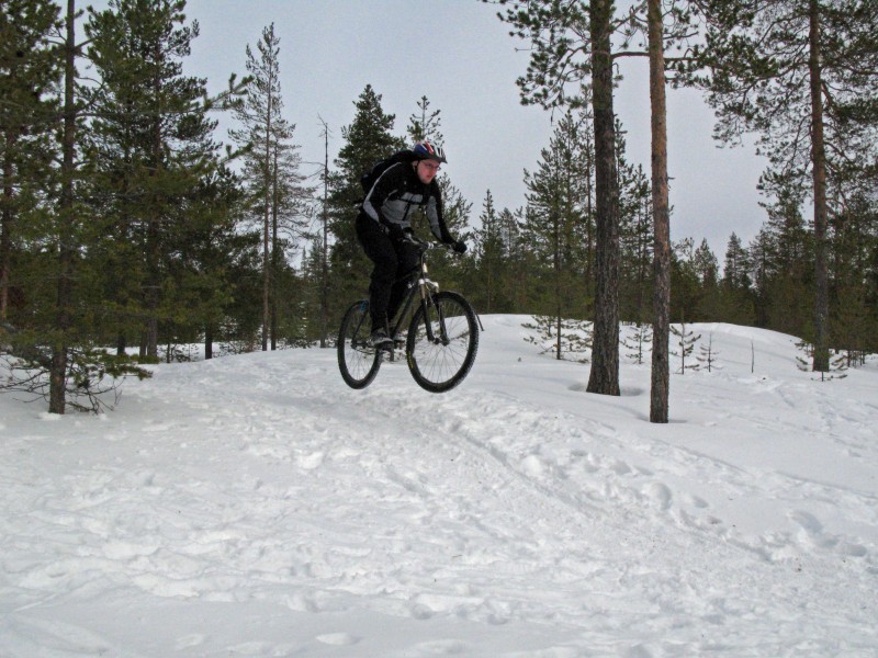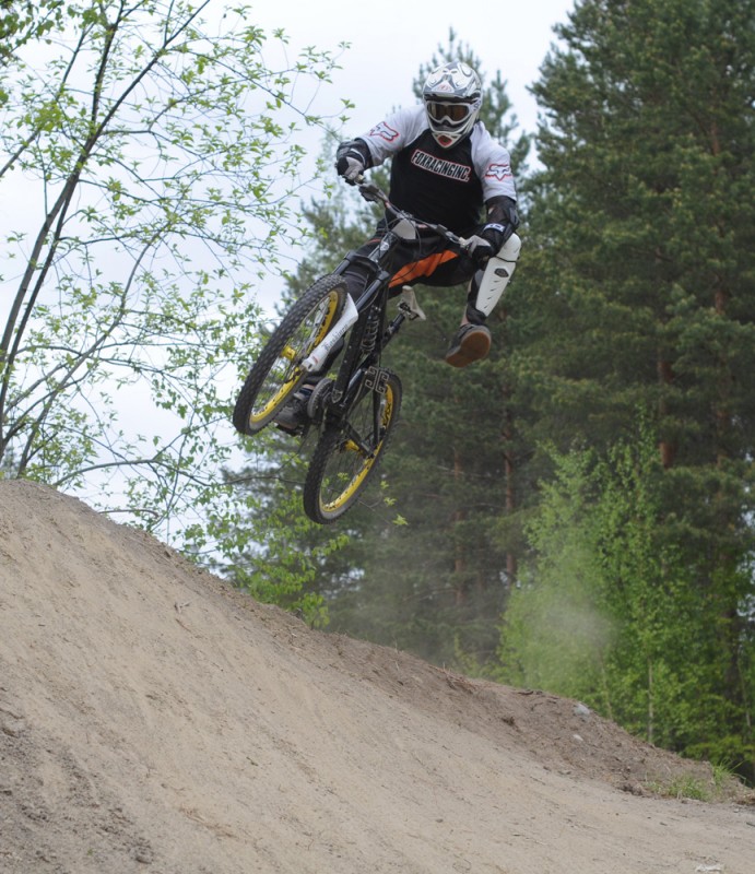 Alkaa Einolla oleen aika hyvin ilmaa hypyissä. Pitää huomenna hommata fullface-kypärä.