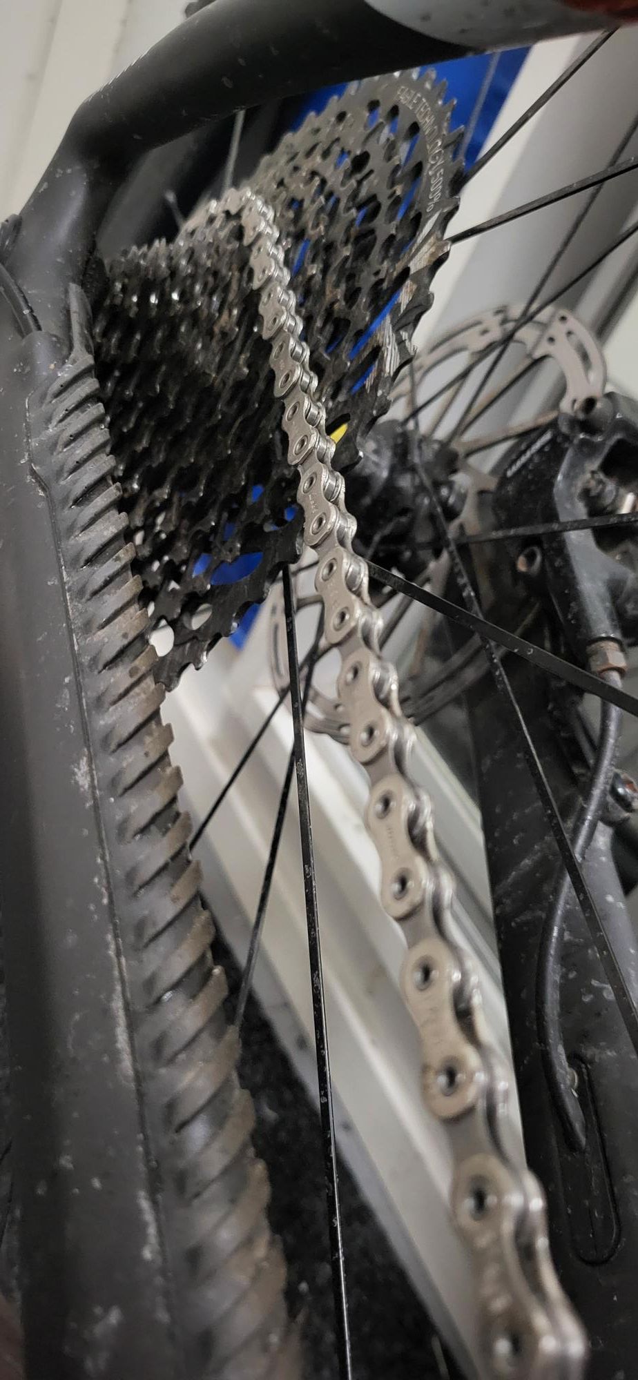 Pakko laittaa tähän kuva omista ketjuista. Reilun viikon ajettu duunimatkaa ilman suolaa ja keskuspuistoa.