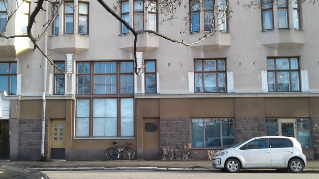 Hyvä rasti, aivan varmasti tiesin nähneeni tämän, helposti tunnistettavat erkkerit, heijastus ikkunoissa kertoi että ei ole kapealla kadulla. Muistolaatasta ei ollut itselle hyötyä, vaikka sekin oli vihjeenä. Ensimmäinen ajatus oli Eteläinen Hesperiankatu. Loppujen lopuksi meni kuitenkin ns. bruteforce-metodiksi, käyden läpi ensin sopivalta tuntuvat kadut ja lopulta kaikki potentiaaliselta näyttävät rakennukset Helsingin niemellä Ruskeasuota etelämpää. Meni varmaan 1,5h. Ihan kuin ei olisi tähdellisempää tekemistä ajalleni, mikä minua vaivaa.. Laskin kännykän pois 4-5 kertaa ”kyllä sen joku kohta löytää”, mutta aina tuli tartuttua uudestaan.